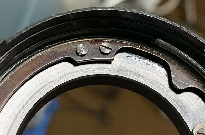 These secure the main plate of the iris mechanism. Before you loosen these and remove the plate make sure that notes and measurements were taken so you could put it back properly. This step isn’t necessary but I had to polish the plate.