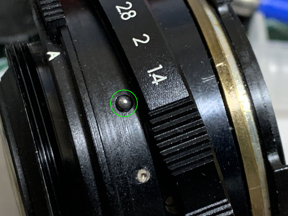 Carefully remove the aperture ring and be sure not to loose this bearing ball. It’s 2mm in size in case you lost yours.