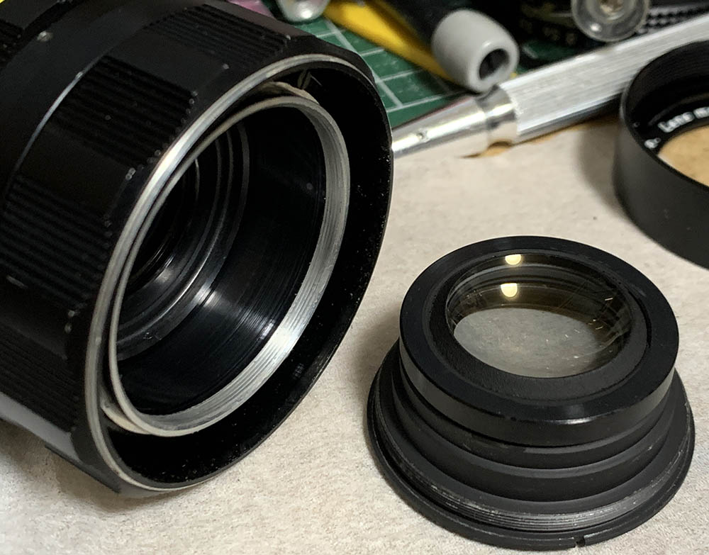 Unscrew the housing of the 3rd group, the glass is sealed to its housing on my lens so I didn’t dismantle it further.