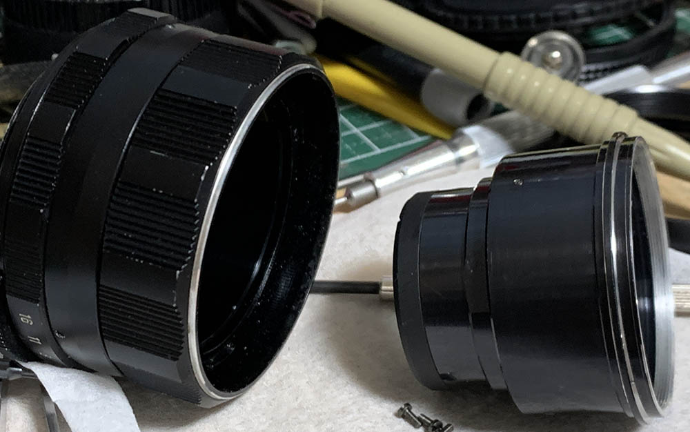 Reassemble your lens up to this point and adjust its focus by loosening the screws of the focusing ring and turning the helicoids until you get pin-sharp focus at infinity. Tighten the screws once you’re satisfied. Read my article on adjusting a lens’ focus so you’ll know how it’s done in a DIY setting using tools that are available to you.
