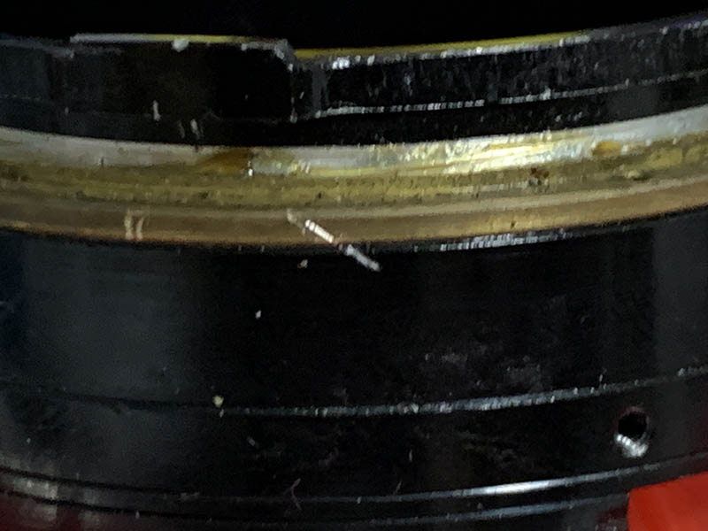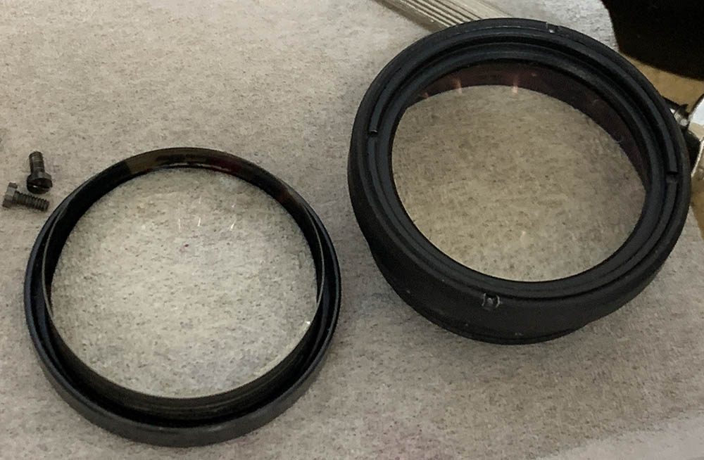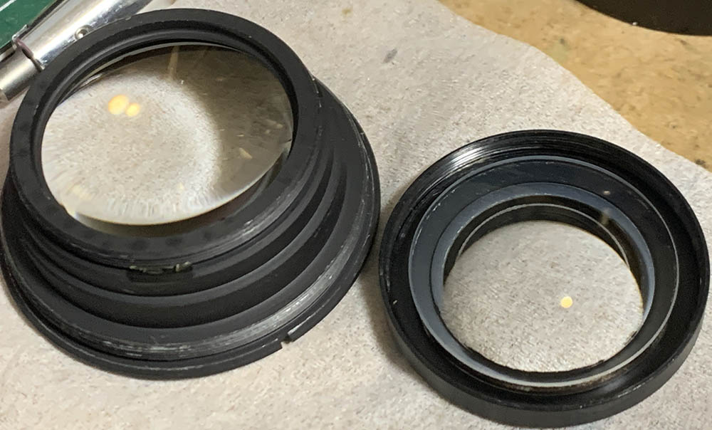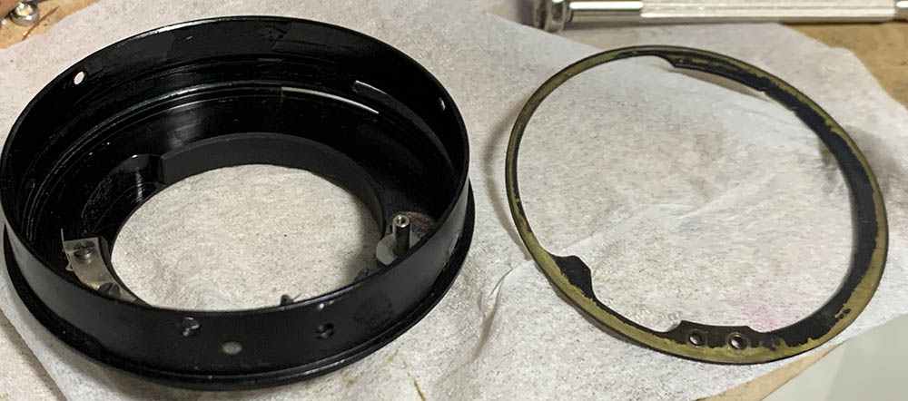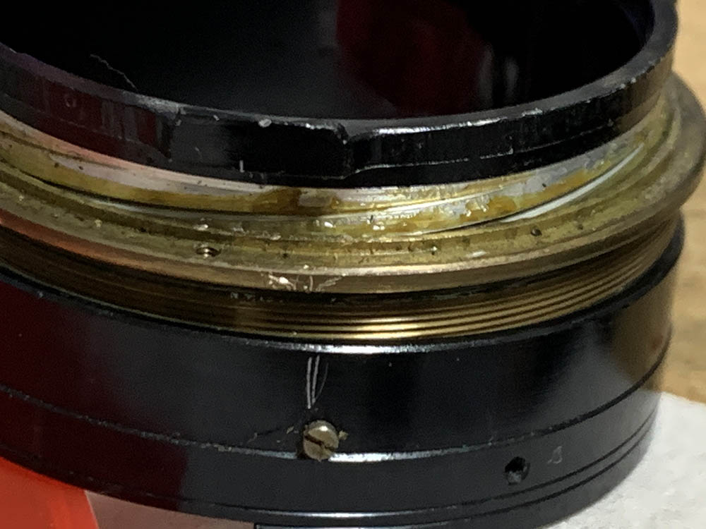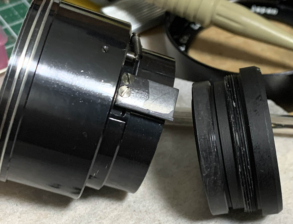 Unscrew this retainer and remove the thoriated-element. Be careful when handling it since it’s rather brittle. If you want to restore this read my article on bleaching radioactive lenses so you’ll know how I did it.