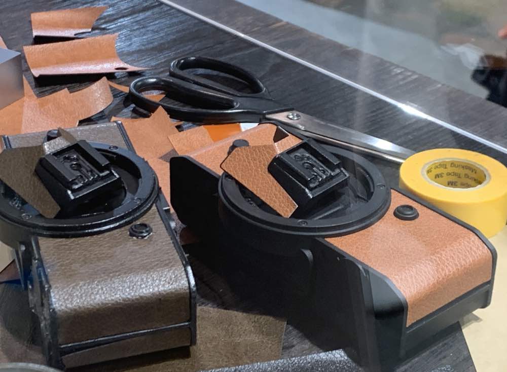 Nikon offers you a service to reskin your camera for a fee. It requires that you send the camera-in for two weeks. All of its leatherette panels will be replaced with the type you like apart from the one covering the rear of the LCD. I don’t know why but it may be because the LCD is such a delicate assembly.