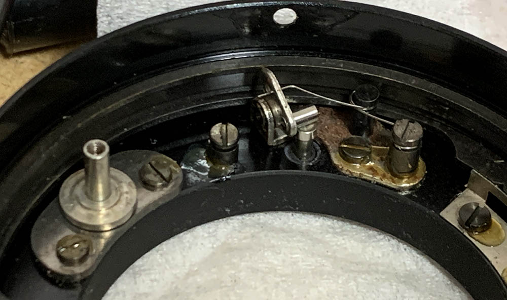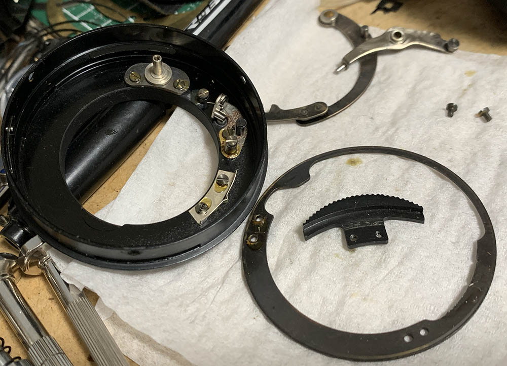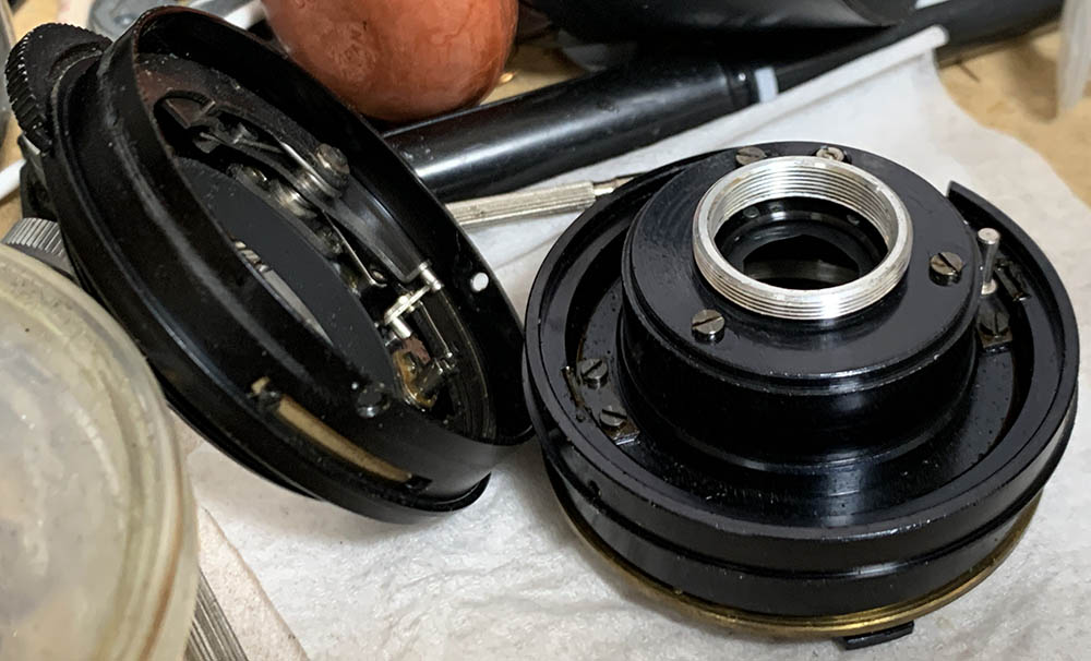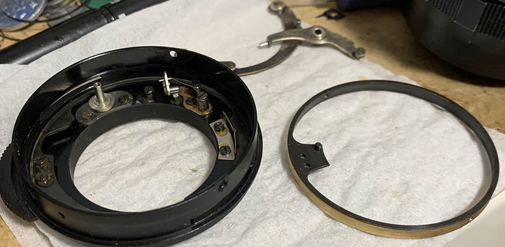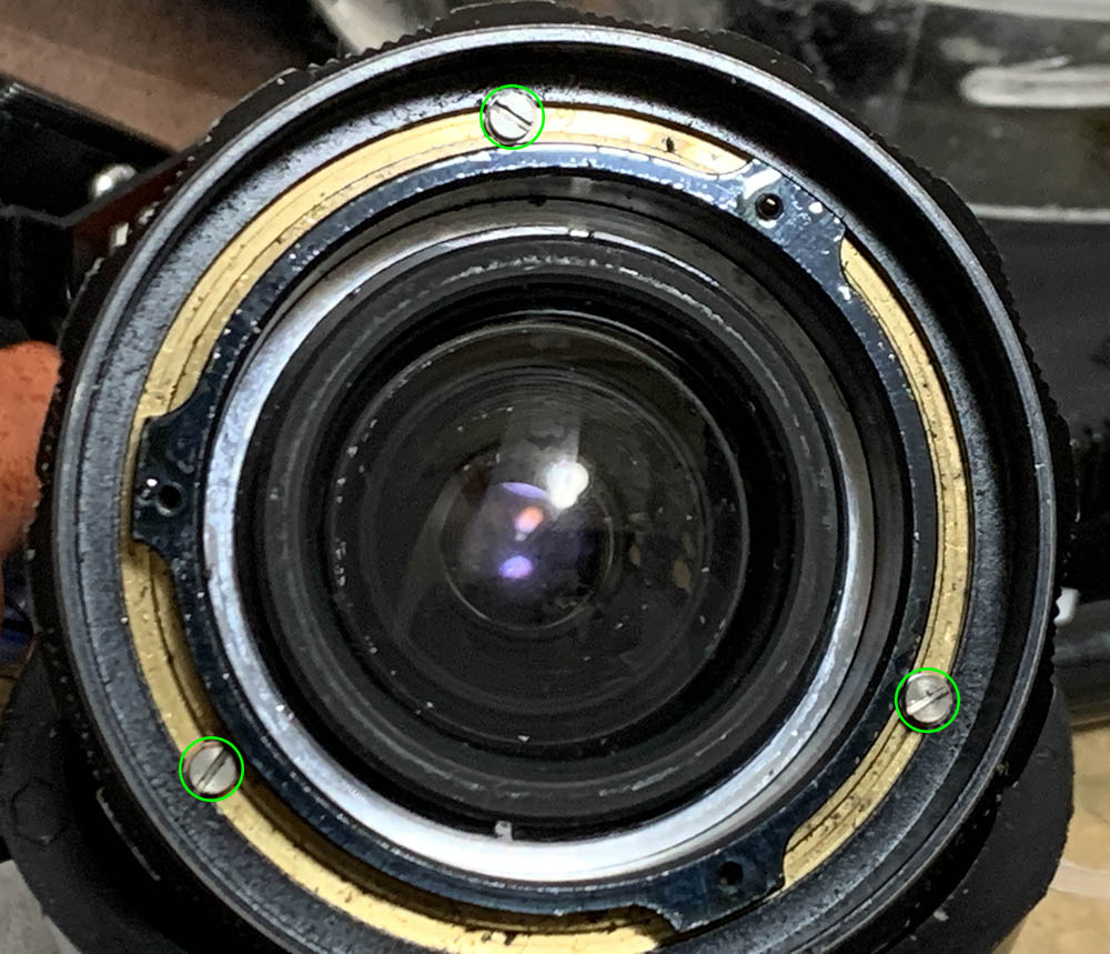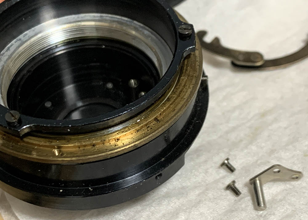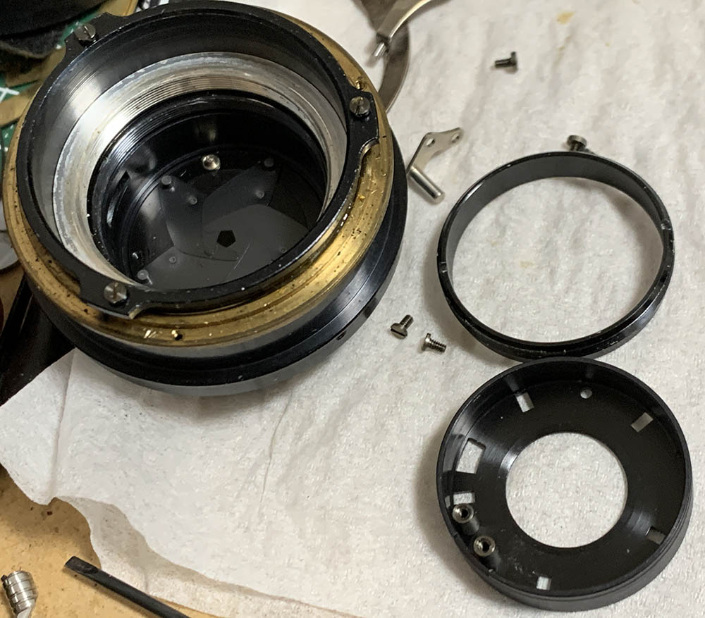 Before you remove these be sure to note the position of the eccentric that you see here in the photo. That thing is for adjusting the iris.