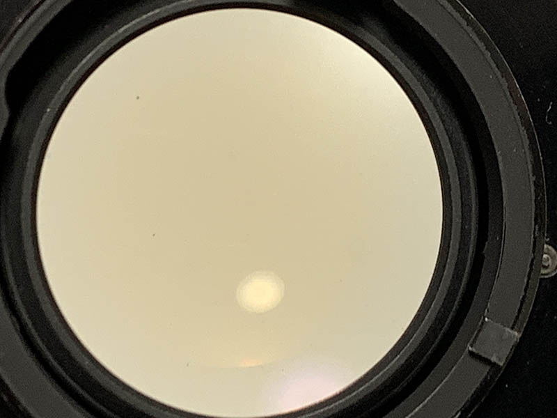 This is how the thoriated-glass looks like when it’s discolored. It forms what some people call a “dark-core” because it’s darker at the center where the glass is the thickest. This yellowing will cause your photos to have a warm-cast, I think it also affects sharpness in small ways, too. It’s not uncommon to find bubbles on older lenses and you could see 2 small ones here. Despite what other people claim these bubbles will show in your photos if you knew how to shoot in such a way that these imperfections could be rendered in your photos. Read my article on damaged lens artifacts to see what they look like.
