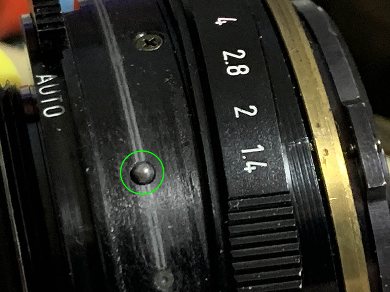 Pull the aperture ring off and be careful not to lose this bearing ball, it’s spring-loaded.