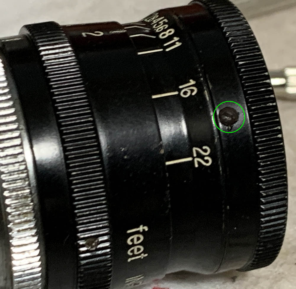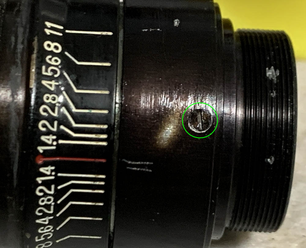 Locate and extract this screw so you can remove the aperture ring. It couples it to the iris mechanism inside. Once this is gone you will have to be careful when handling the iris because there’s nothing that will constrain the movement of the iris mechanism and you can easily damage it by rotating the diaphragm cup too much.