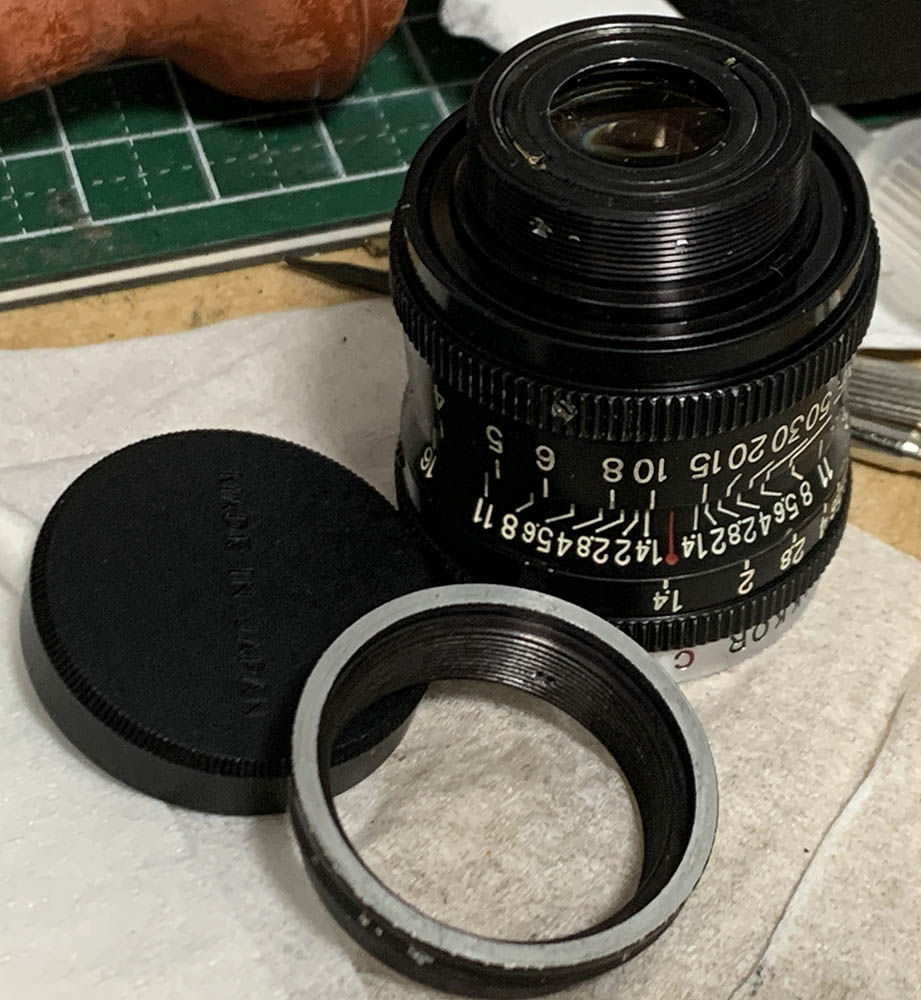 It feels quite dense despite being the smallest C-mount Nikkor thanks to its brass barrel. It’s merely painted so you will have to be careful when cleaning it. It resembles the smaller D-mount Nikkors such as the Cine-Nikkor 13mm f/1.8 and you could accidentally look-past one because of the resemblance. If that’s not confusing enough there’s an even faster model called the Cine-Nikkor 25mm f/1.2 which is considered rare, that one looks nearly-identical to this lens except it has f/1.2 engraved on it. The differences are so subtle but an expert could tell them apart by looking at how the barrel looks because the slope of the rings look different.