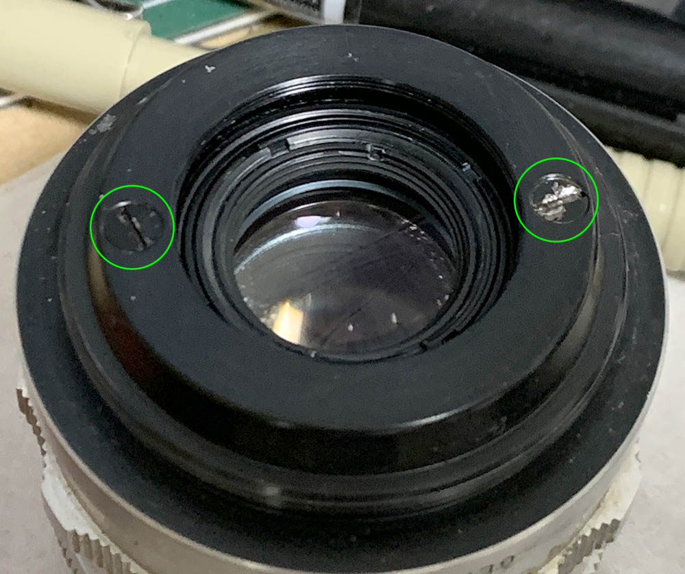 Typical with all Tessars from the same era and of the same mount you begin by extracting these. Never strip the slots, I would heat them with a soldering iron if they’re stuck the carefully unscrew them while they’re still hot.