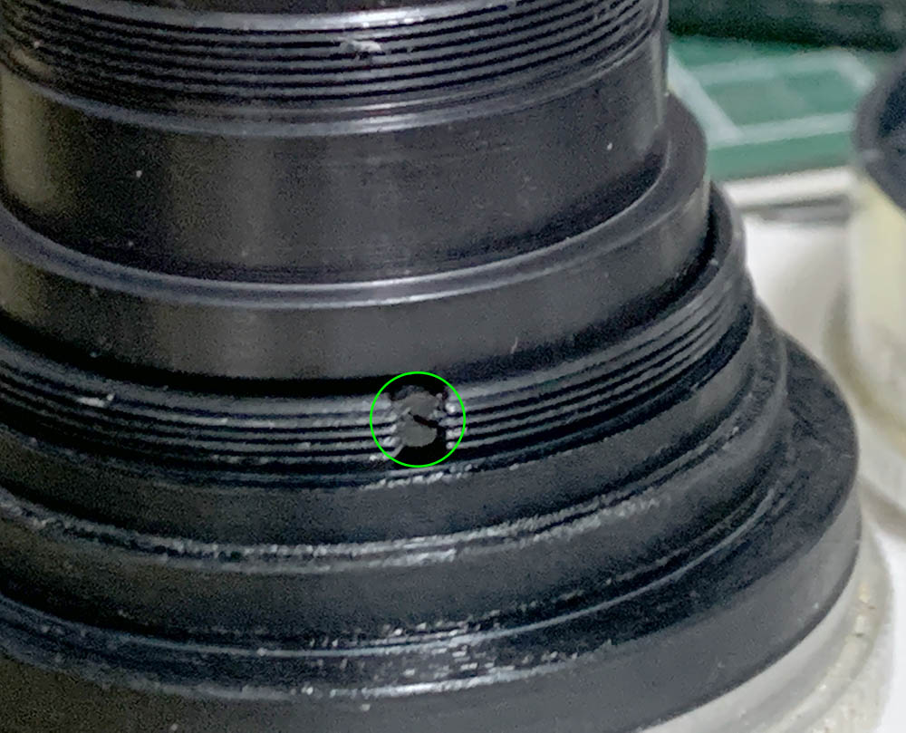 Mine was sealed with contact-cement as evident by the snot-like thing you see here. These serve as helicoid keys, don’t warp or damage these or your lens won’t be able to focus smoothly.