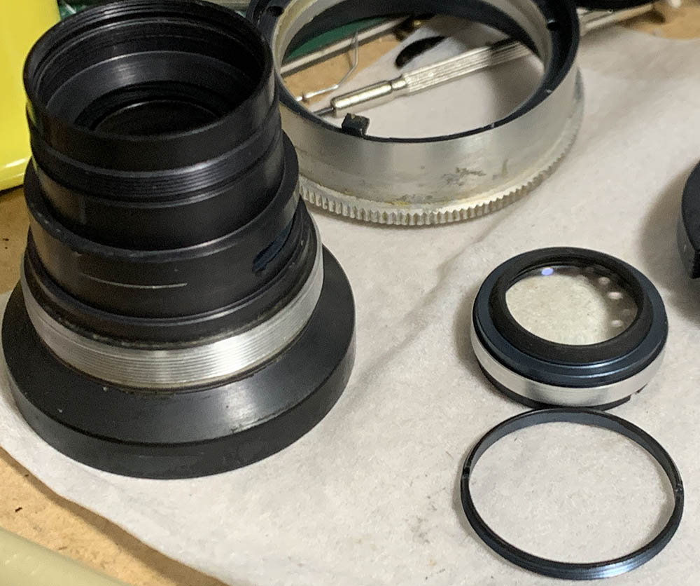 Overhauling the iris mechanism takes the most time, you’ll probably spend about an hour putting the leaves back. It’s a tedious job but I’m used to it.