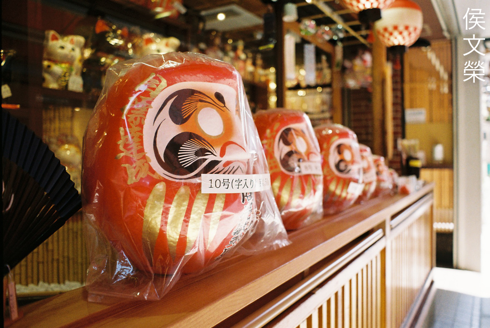 These Daruma-dolls are red but they look more yellowish here due to the film. Shooting with a 28mm lens allows you to exaggerate your lines so you could make your subject appear larger-than-life. The doll closest to use appear much larger compared to the rest due to the effects of foreshortening, you can use this to tell a story or direct your viewers’ attention to your subjects.