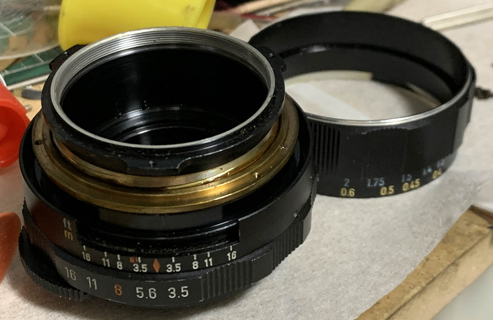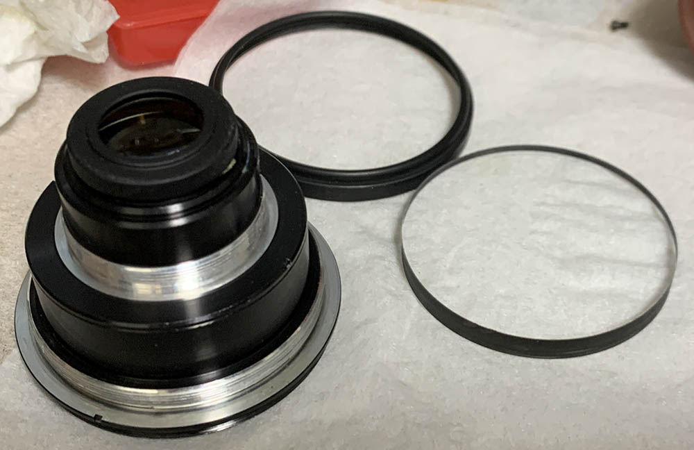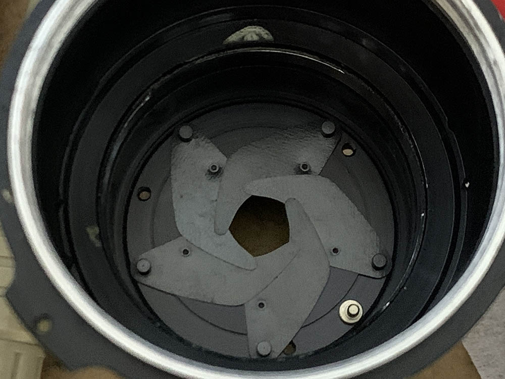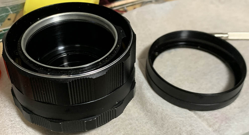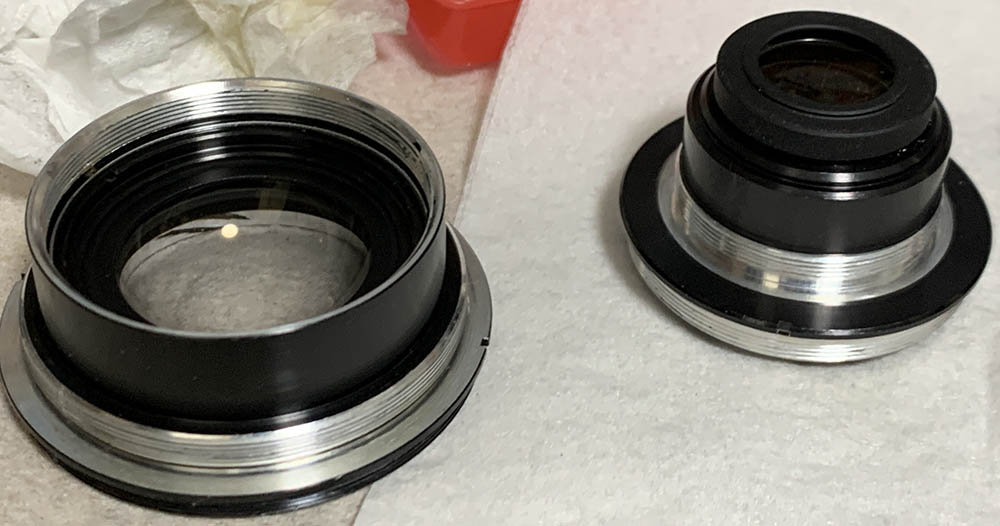 Fortunately the internal fungus was present only on the external surfaces of the front & rear optical assemblies where they meet at the iris – and could be cleaned in a pinch by removing just the rear group assembly and opening up the aperture to carefully access the rear element of the front group for cleaning.