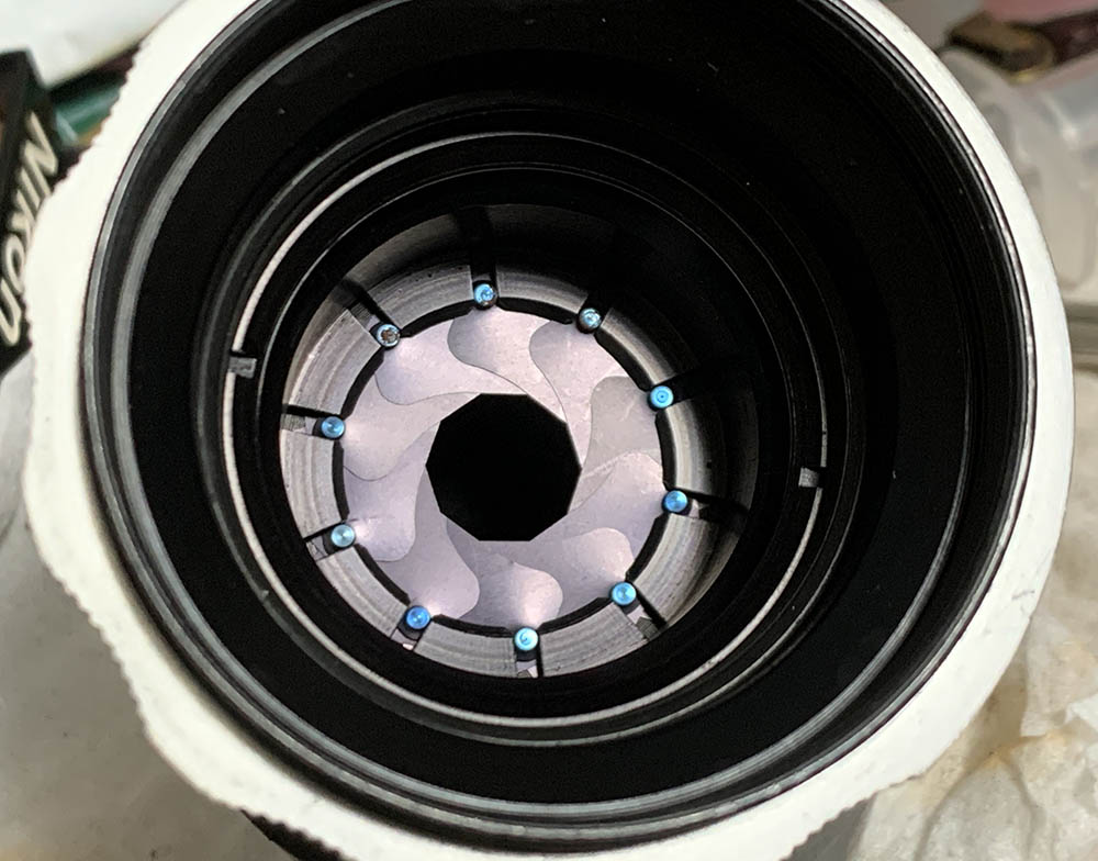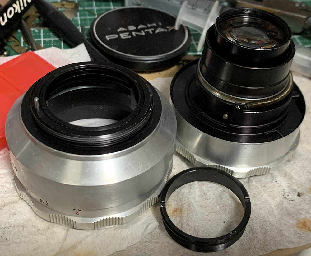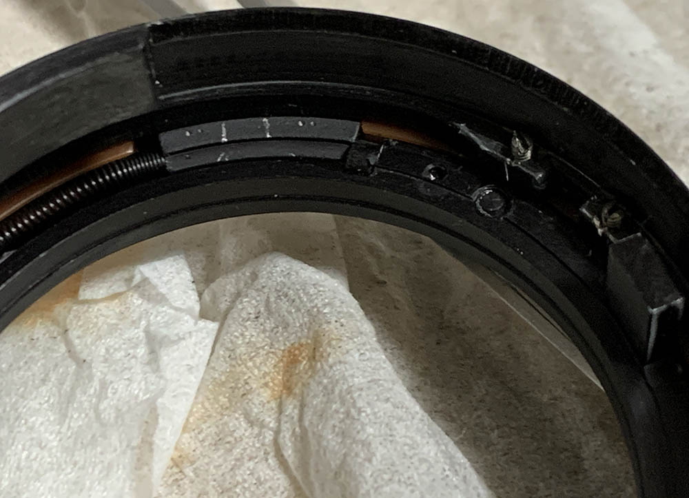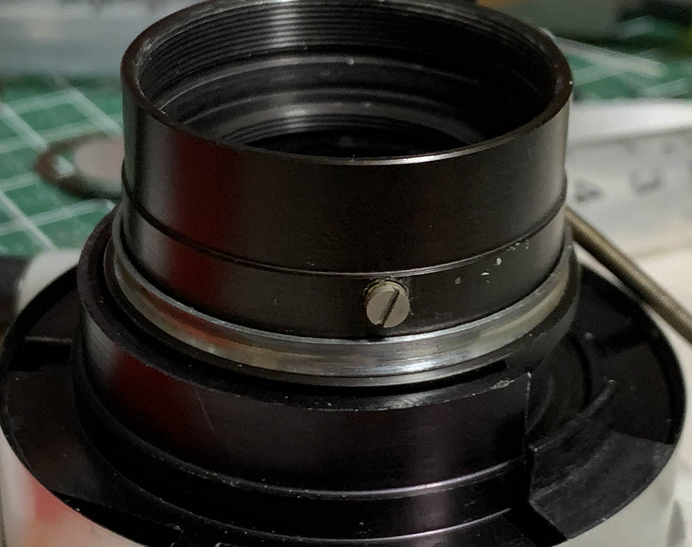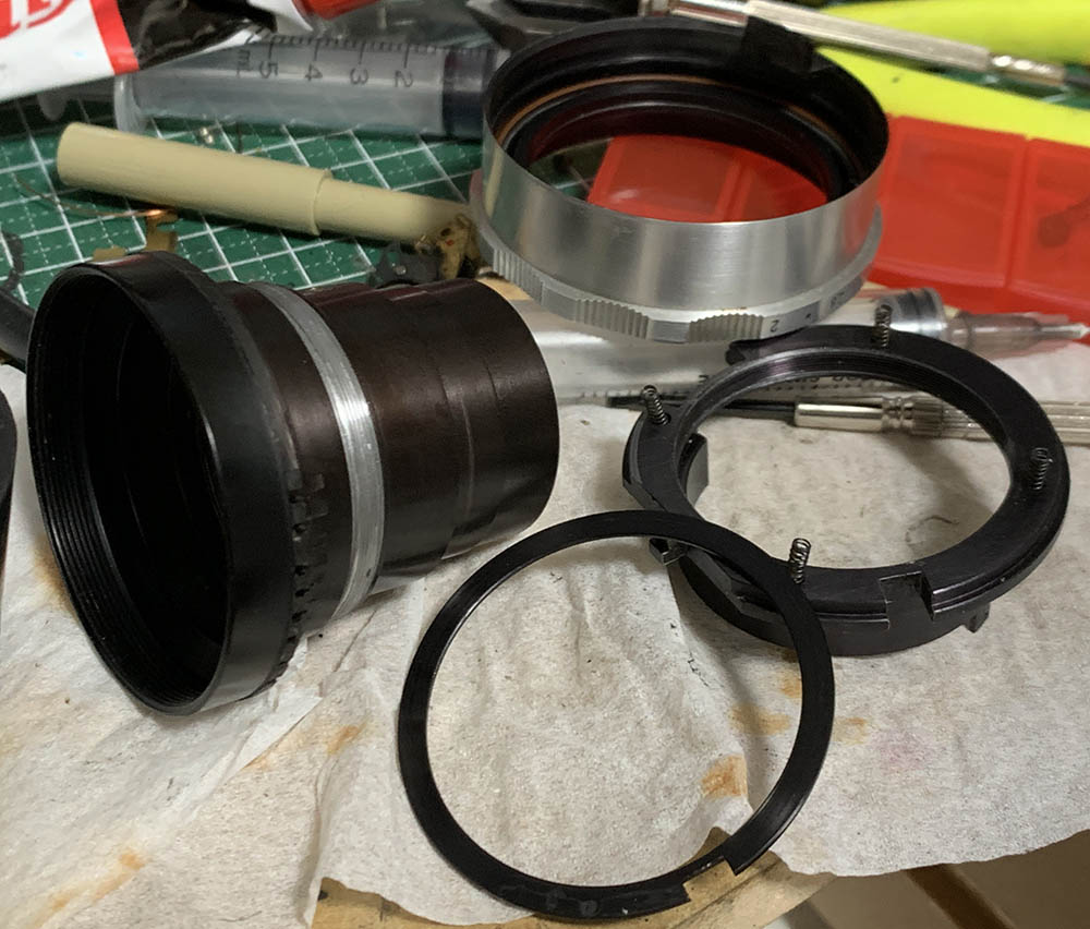 The iris mechanism is delicate so be careful not to damage it. There is a retainer securing the whole mechanism, a long lens spanner helps in unscrewing this retainer.