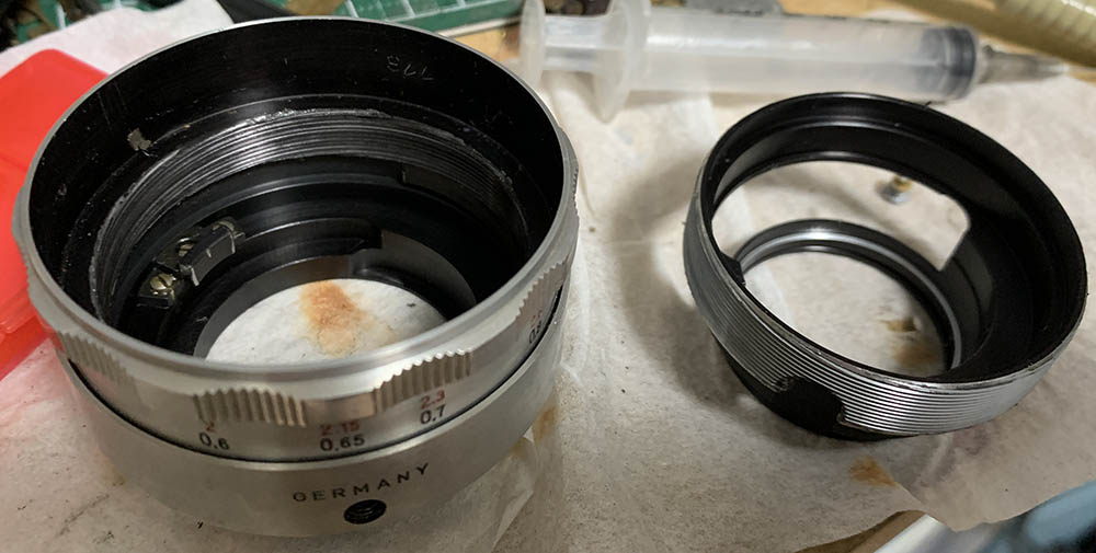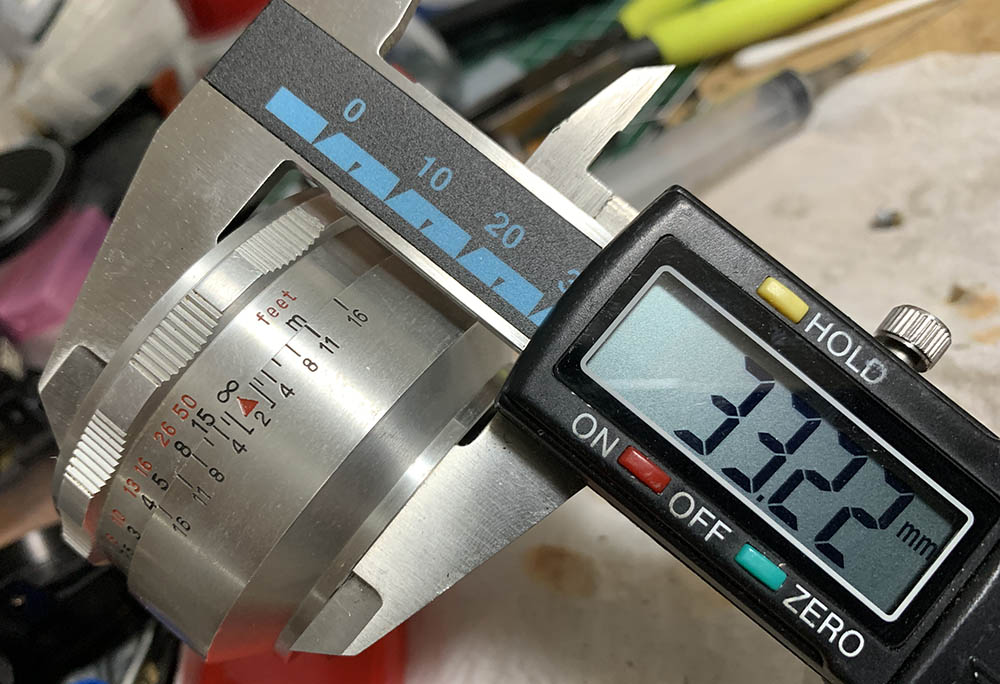 Before you continue it’s best to measure the height of the focusing-unit so you’ll know how tall it is when set to infinity but I think I should’ve taken the measurement while the front-barrel is still connected so it also measures the depth of the innermost helicoid.