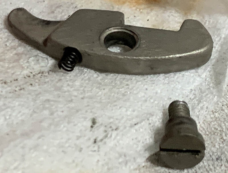 Carefully extract this large screw to remove the pawl. It secures the aperture-ring after you’ve cocked it. Depressing the pin at the rear will release this, closing the aperture the aperture down in a swift manner as it’s spring-loaded.