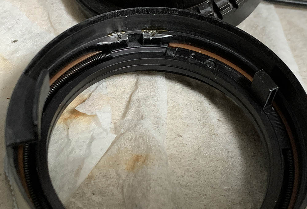 There’s a rubber damper underneath this, be sure not to damage it. Without this you’ll feel a strong shock when the iris is closed.