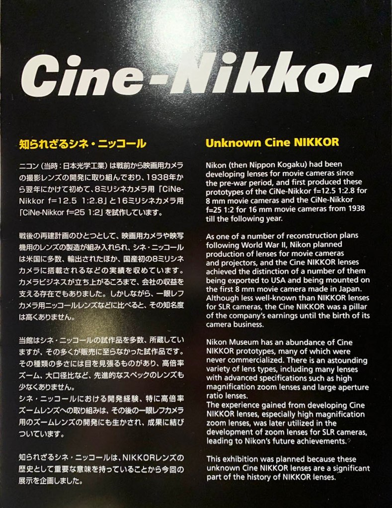 This is what will greet you once you enter the exhibit. I wasn’t aware that Cine-Nikkors played such an important role in the company’s development, both financially and technically. I think they deserve more appreciation and research. I am doing what I could to help bring awareness to these treasures but finding information about them is difficult.