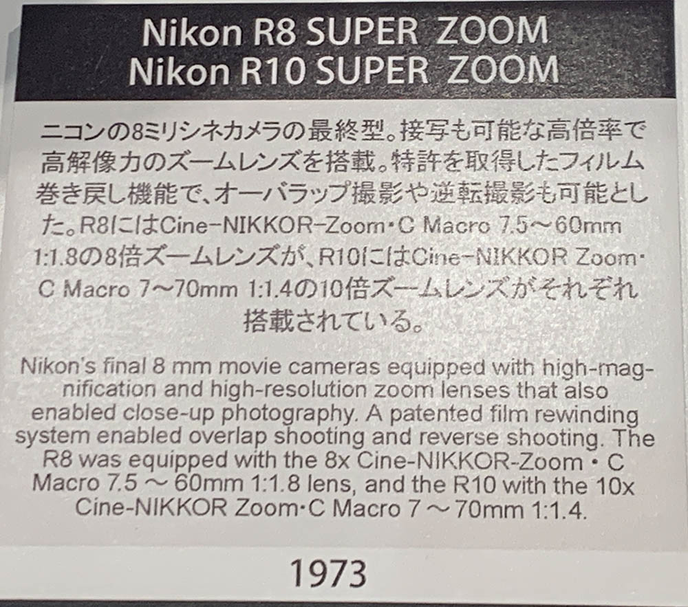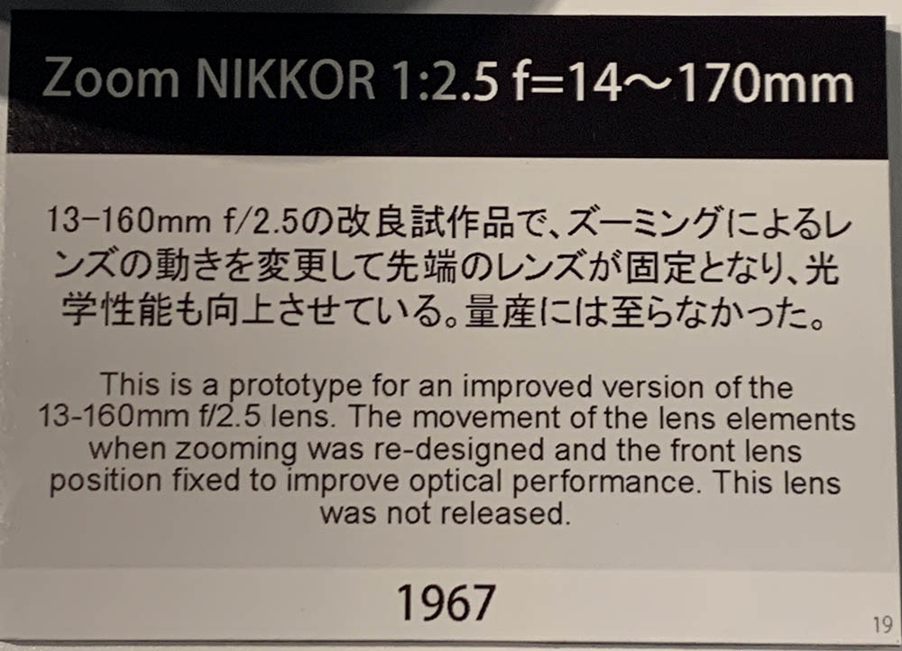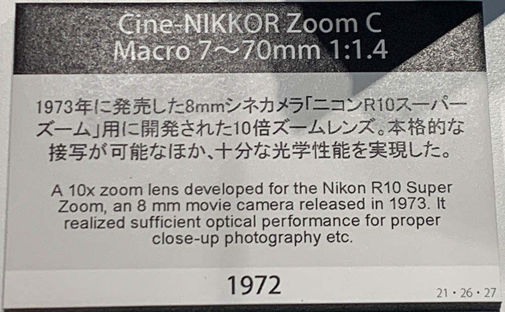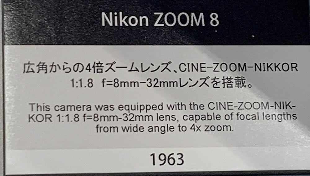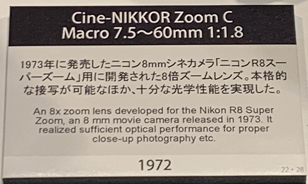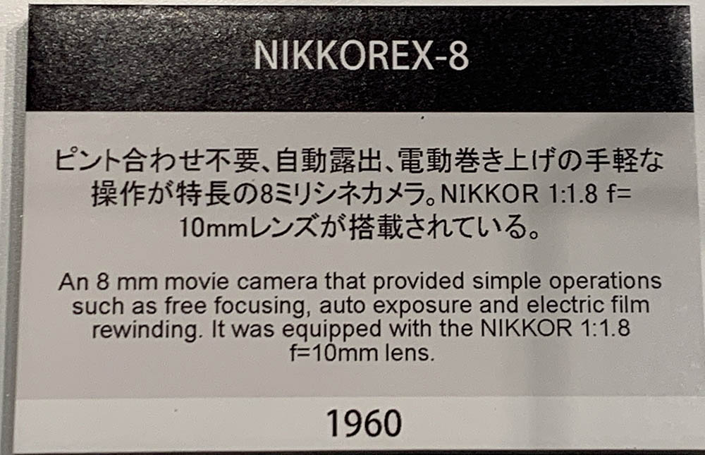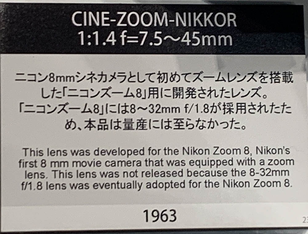 This part of the display shows the origins of the C-mount Cine-Nikkors that I’ve been writing more about recently. This is an eye-opener for me because I never knew when these were made and for how long, at least I now know when the series began. It is safe to assume that there are 2 main eras for C-mount Cine-Nikkors, ones that came before this line and the ones that came after. This is where these Cine-Nikkors began to look more modern.
