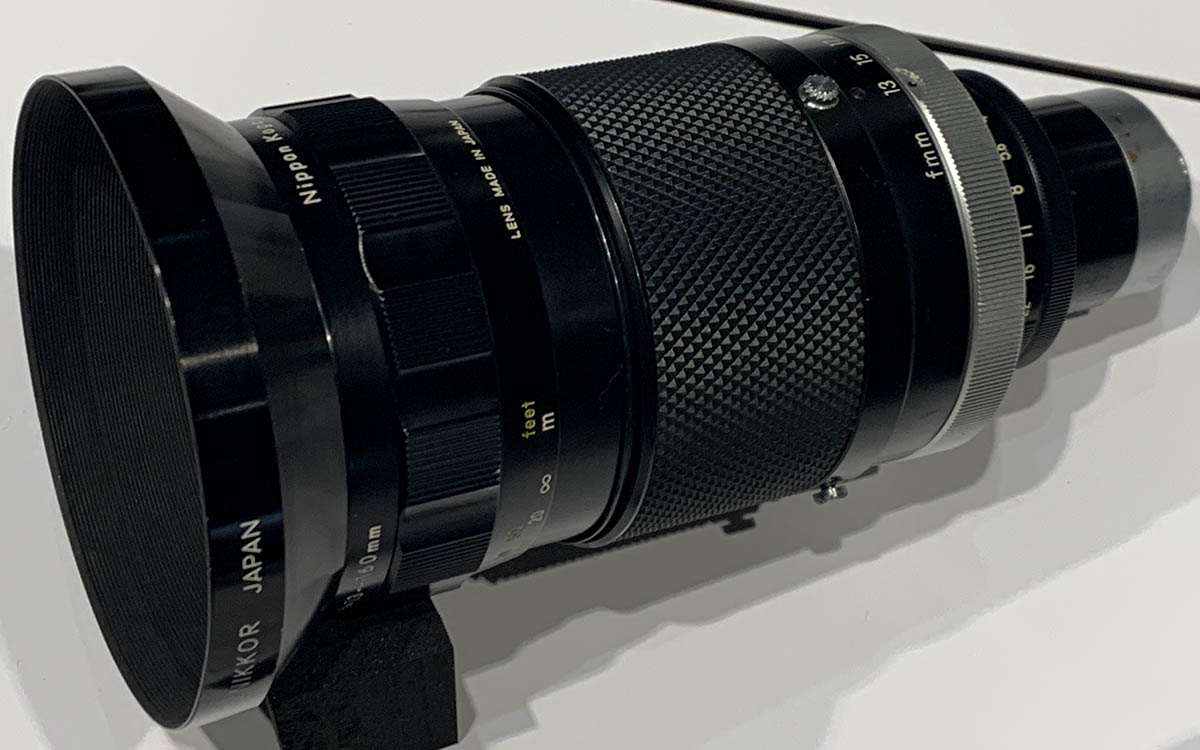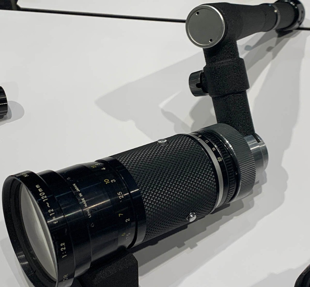 This is the first interchangeable D-mount Cine-Zoom-Nikkor that I’m aware of. The maximum-aperture is quite fast for a zoom of its kind as evidenced by the large front. One can only marvel at the engineering and quality of this lens, it’s just a prototype but the finish looks beautiful.