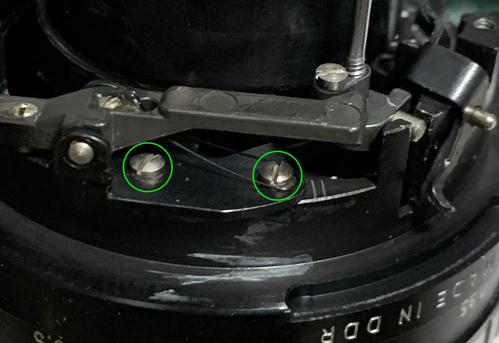 Carefully note the position of this damper then extract its screws. This is adjustable so the iris mechanism will be able to close-down correctly to the right diameter.