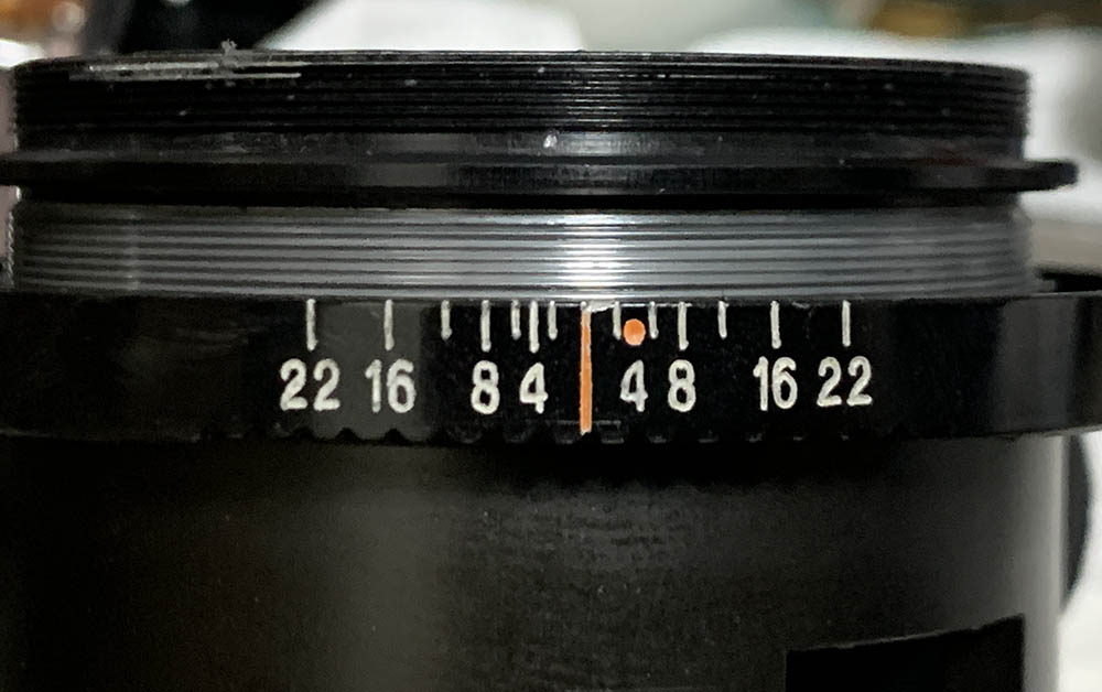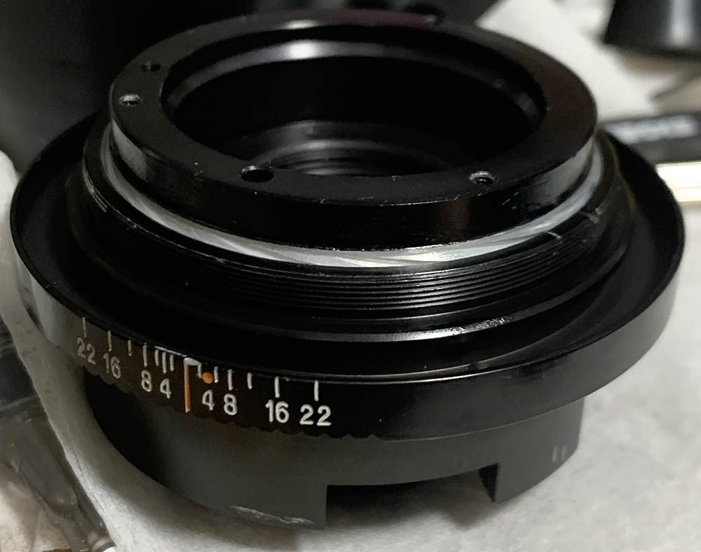 Carefully remove the aperture ring, there’s a little ball here and you don’t want to misplace it.