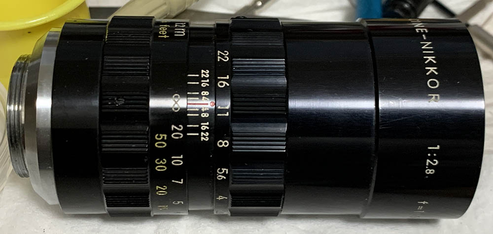 This is the longest of all C-mount Nikkors, it has an impressive barrel that handles quite well. It also has an informative depth-of-field scale, which I do not find all that useful. It is the only thing you will have when you shoot with a 16mm camera because you won’t be able to view through-the-lens. There is a finder for framing but that separate accessory won’t help you focus at all.