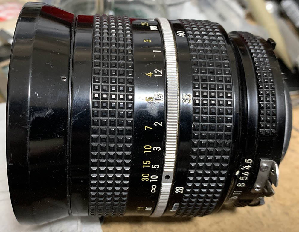 The great Zoom-Nikkor 28-45mm f/4.5 K was sold from 1975, it was replaced by the similar Zoom-Nikkor 28-45mm f/4.5 Ai which was sold until 1978. It set a new milestone, it is the first true wide-angle zoom by a major company that went into production. It was hailed as an engineering breakthrough back then and it helped change the bad reputation of zoom lenses had until that time of being poor performers and the tendency of having wild distortion at either end of the focal-range.