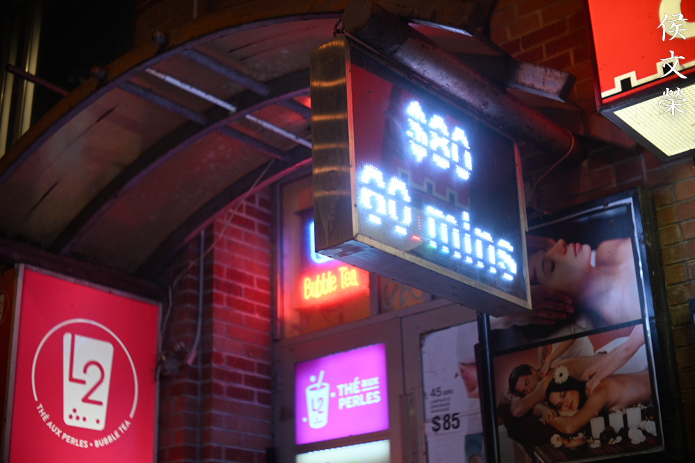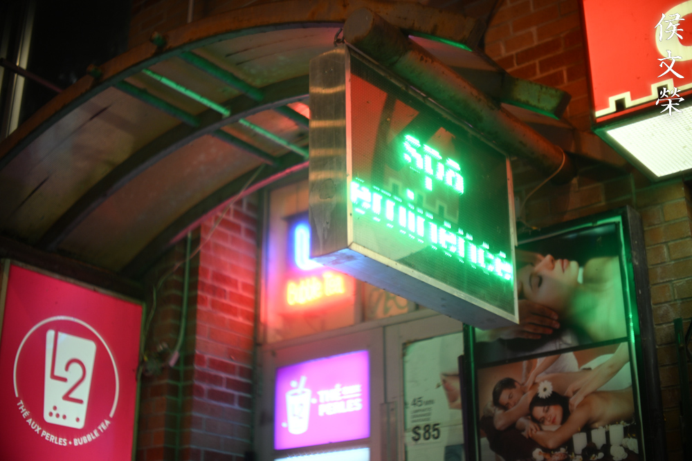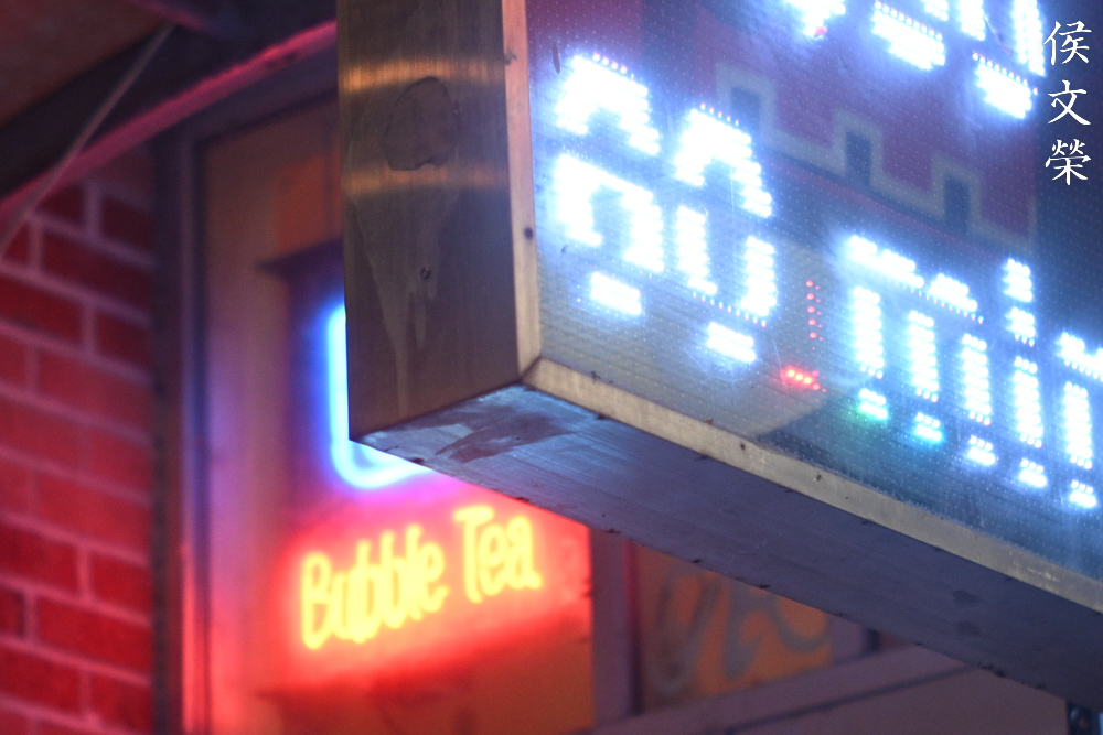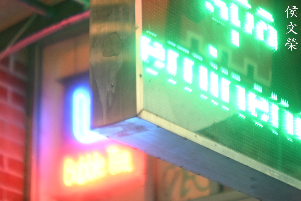 I love how it renders, it has a natural look despite having ugly artificial lighting in your scene. The bloom in this photo helps give you the impression that the signage is indeed very bright. A more recent lens will probably subdue this effect, giving you a cleaner look but the photo has no character at all.