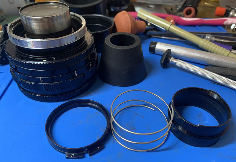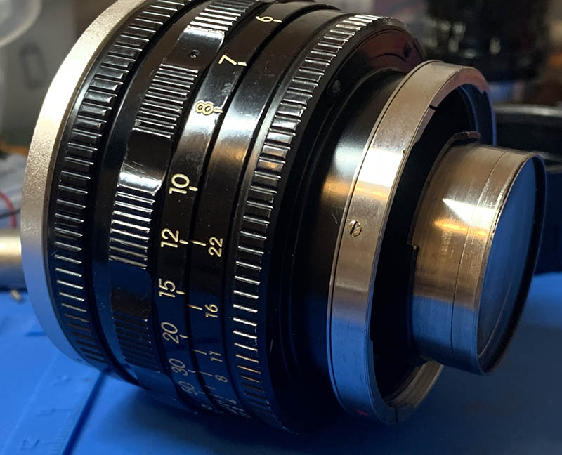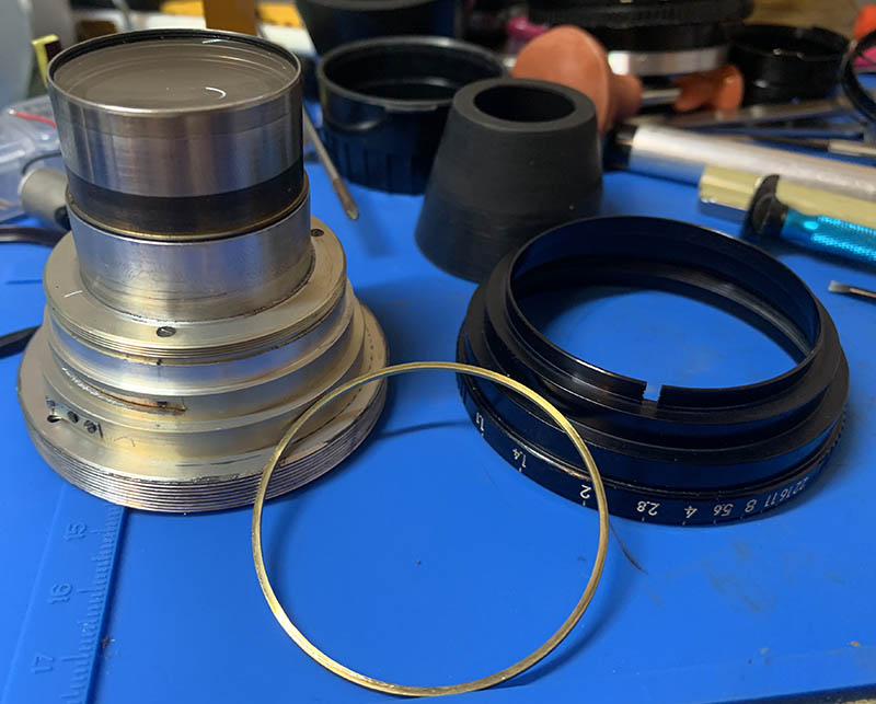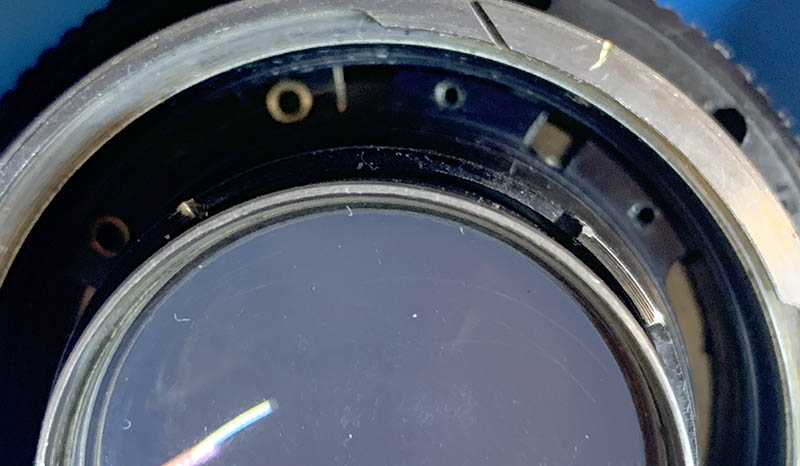 The iris mechanism looks dry and reasonably clean so I did not take it apart. Notice that the plane of the iris curves and dips inward slightly, this is by design.