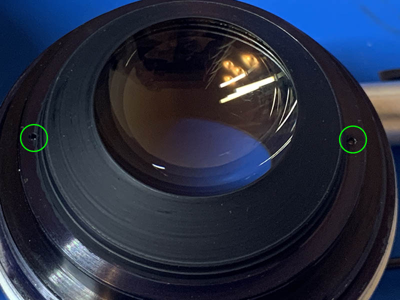 Loosen the tiny set screws of the focusing ring so you can remove it. The screws are very tiny and they are easily misplaced.