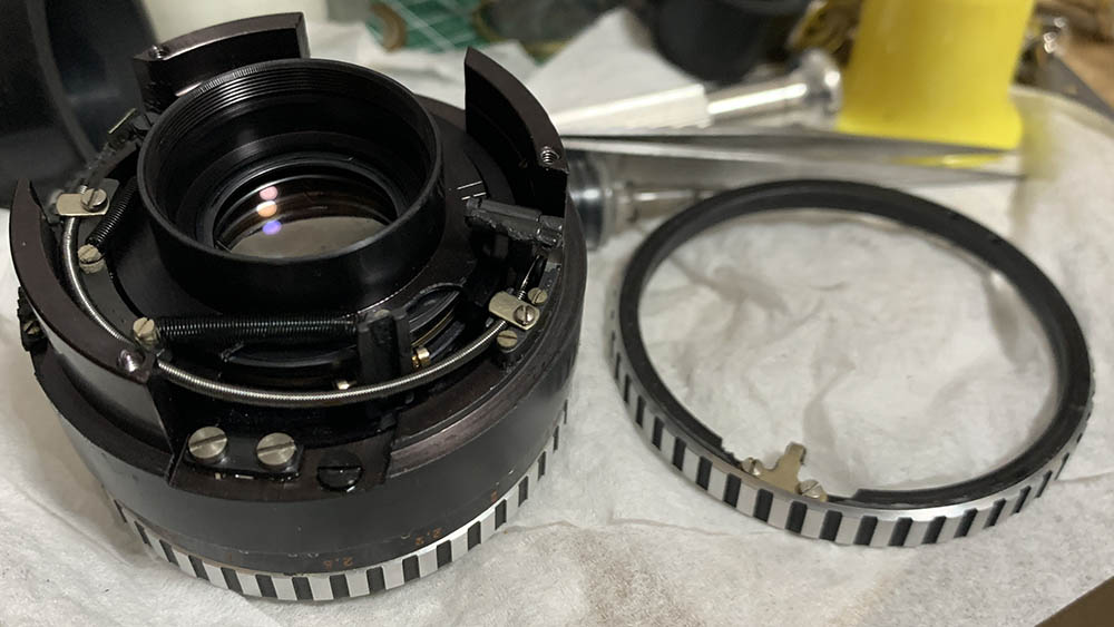 Putting this back together requires more time than anything else when working with this lens. You’ll need a lot of patience just to align everything and make sure that all the mechanisms work together perfectly. I never had the need to lubricate the iris mechanism, even with powdered graphite. It just works fine as it is but the only issue I have encountered here are springs that have lost their tension, it is caused by leaving the aperture open or closed for too long where the springs are extended. It’s hard to correct this because you will need to know how much tension is exactly required. You can guess this yourself if you can take a risk. Just make sure that the tension is not too strong.