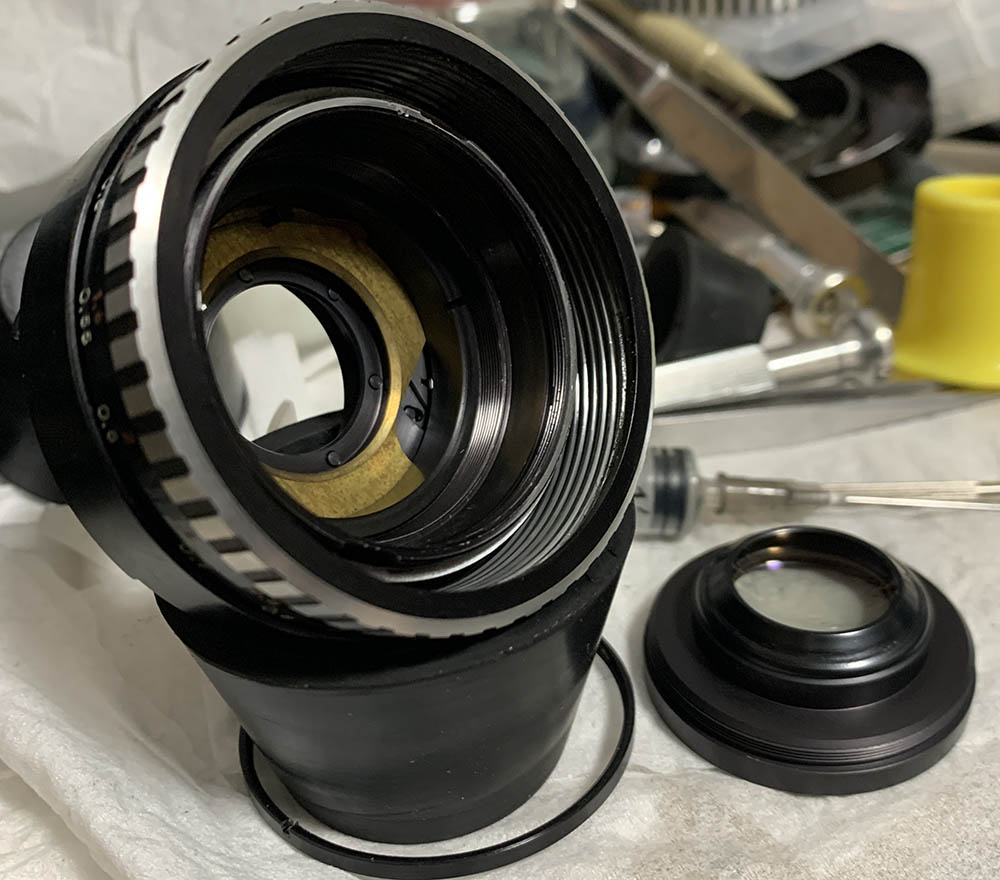 This one took me some time to reassemble because it’s so complicated. I have never repaired something like this, it is definitely the most overengineered manual 50mm that I have ever seen. It even has cables to actuate the iris, I haven’t seen this implemented in any other lens. Sure, cleaning everything took time but putting things back took much longer specially the overcomplicated iris mechanism and I will show you how to get it done in the next sets of photos.