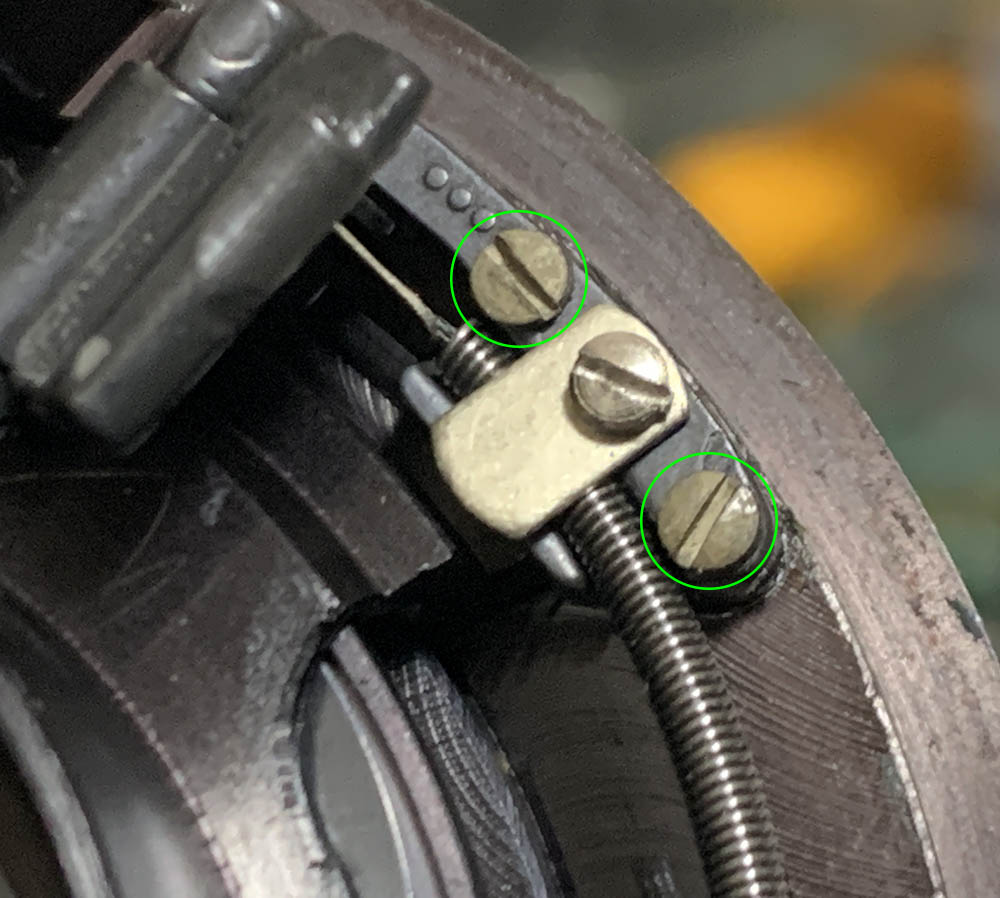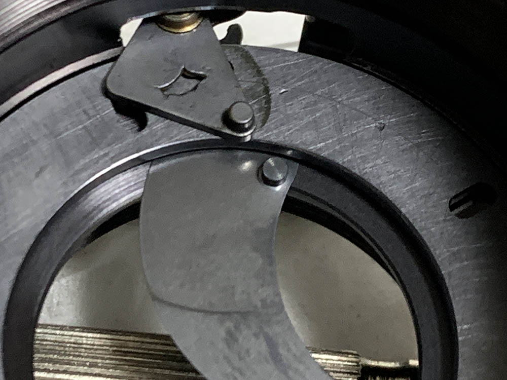 Extract the screws of the iris mechanism’s slider but you should note its original position first because this is adjustable. Putting this back in the wrong way will result in incorrect exposure.