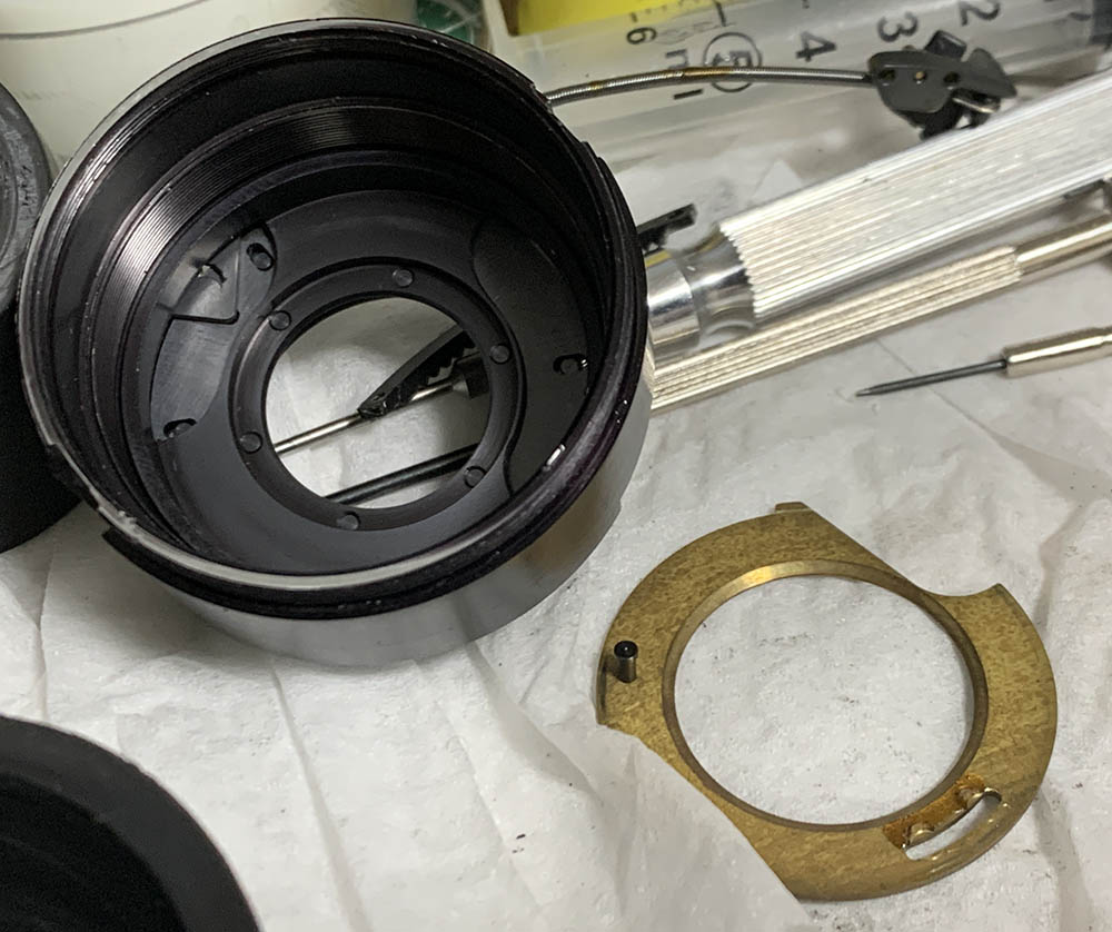 Study how everything works before you remove anything so you’ll know how to put this back. This lens is quite complicated so be sure to familiarize yourself with how things link to each other and take plenty of notes and photos.