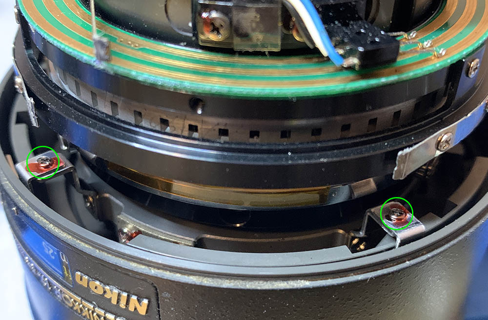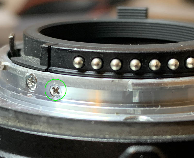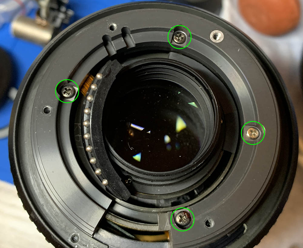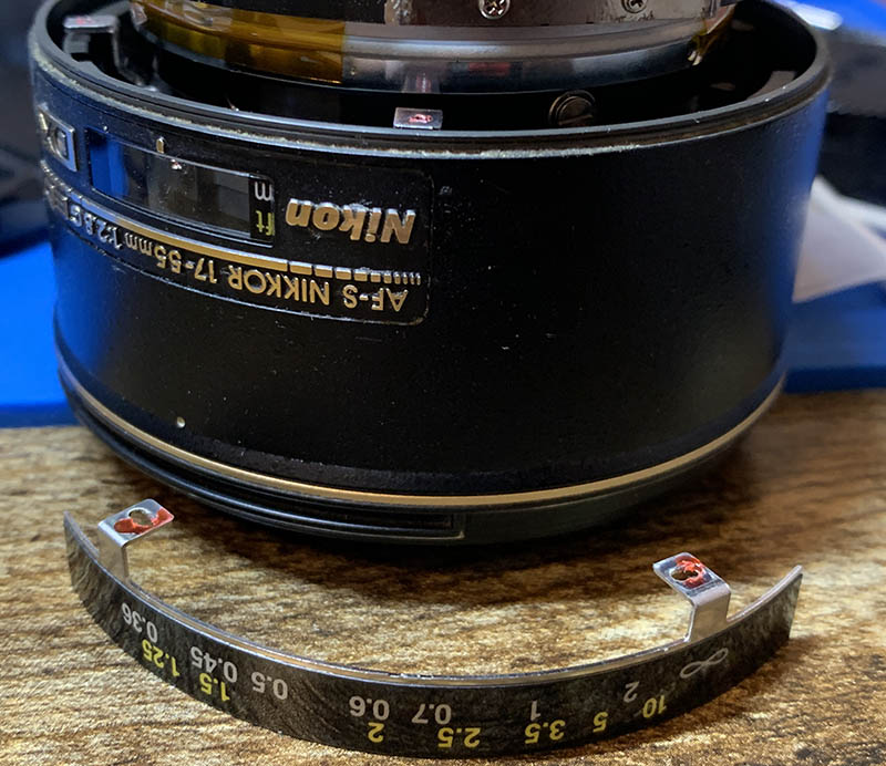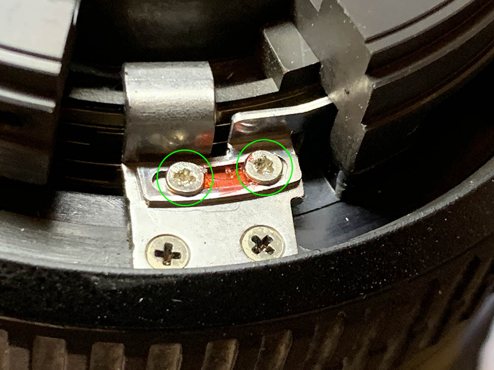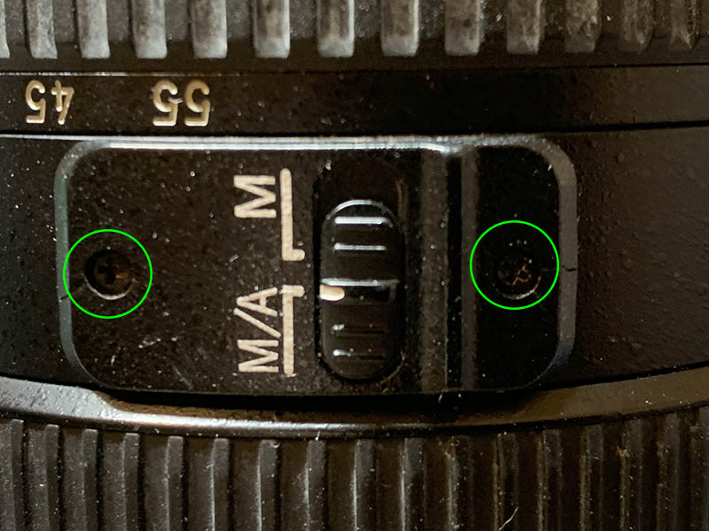 Extract these screws carefully to remove the distance scale but don’t forget to note the scale’s position. It is adjustable, while not as important compared to a manual lens, you will still want to do this correctly.
