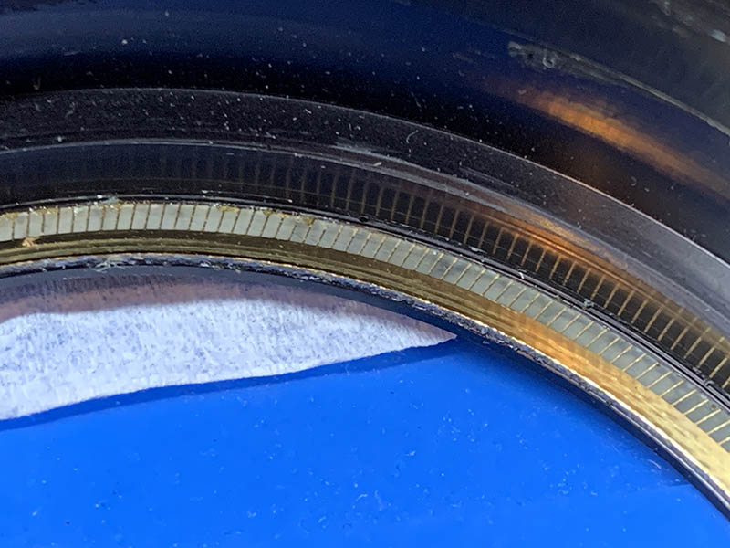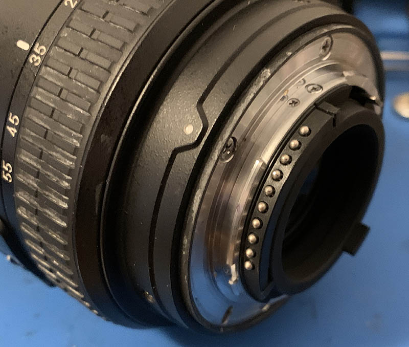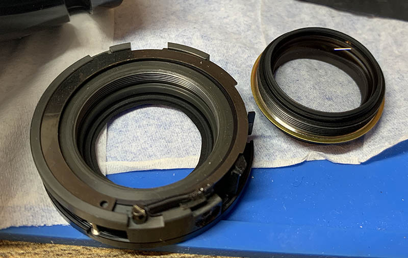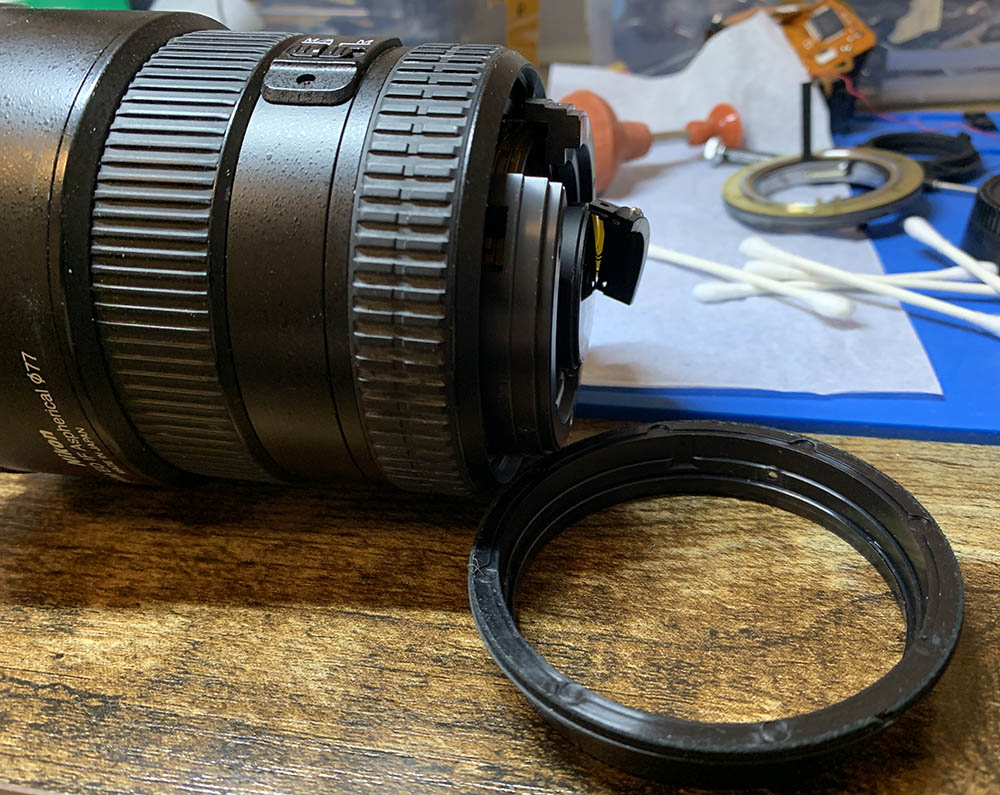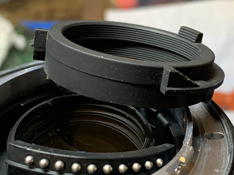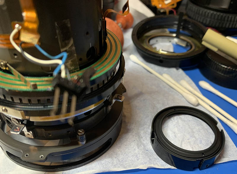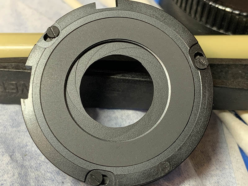 Pull the focus ring off carefully so you won’t damage the springs and contacts. These are usually filthy so I always clean the crevices. When putting this back, you will notice a slight resistance, you will need to push one of the springs to make way for this.