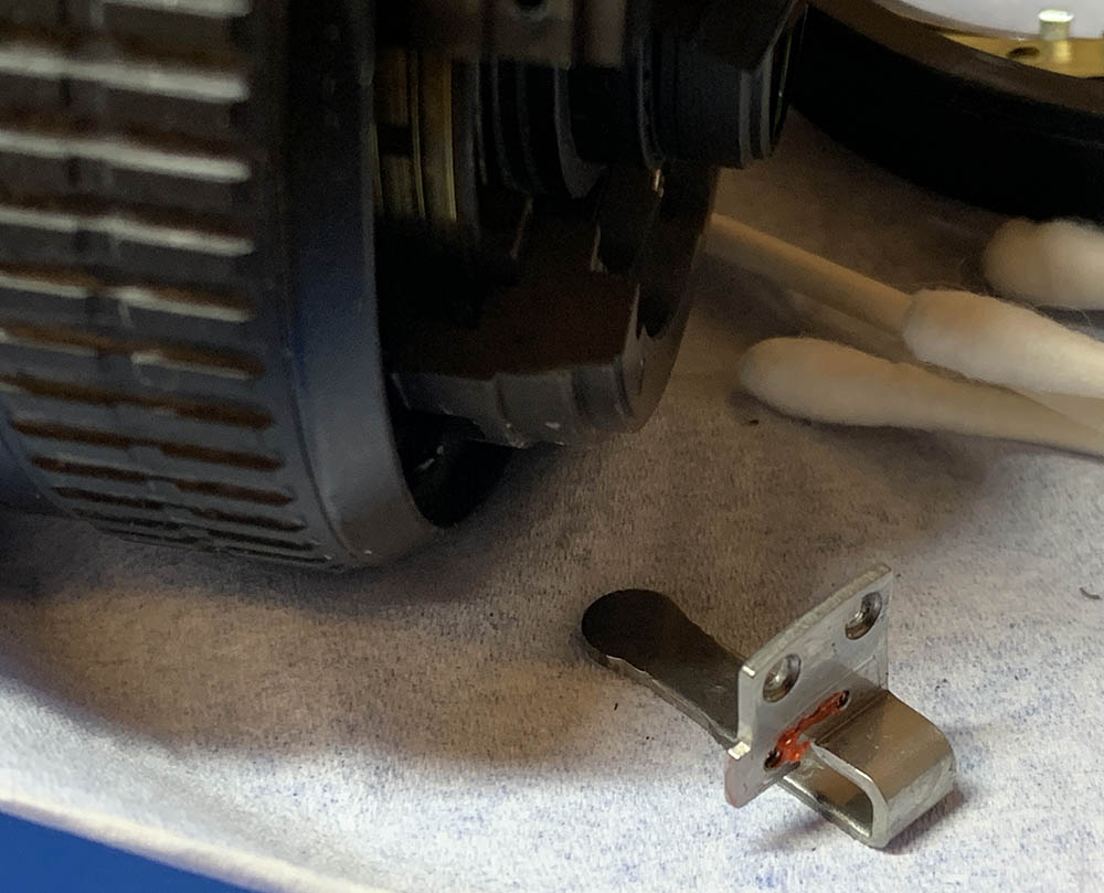 When reassembling the iris mechanism, don’t forget the direction of the blades. Secure the ends of each spring to their posts with nail polish so they won’t get loose, if that happens, you’ll need to open the lens again. Finally, when putting back the cover, never burnish it because that will interfere with the movement iris. It’s enough to make the iris mechanism work in a sluggish way. Operate the iris mechanism again and see if it actuates in a snappy way, there should be no sluggishness.