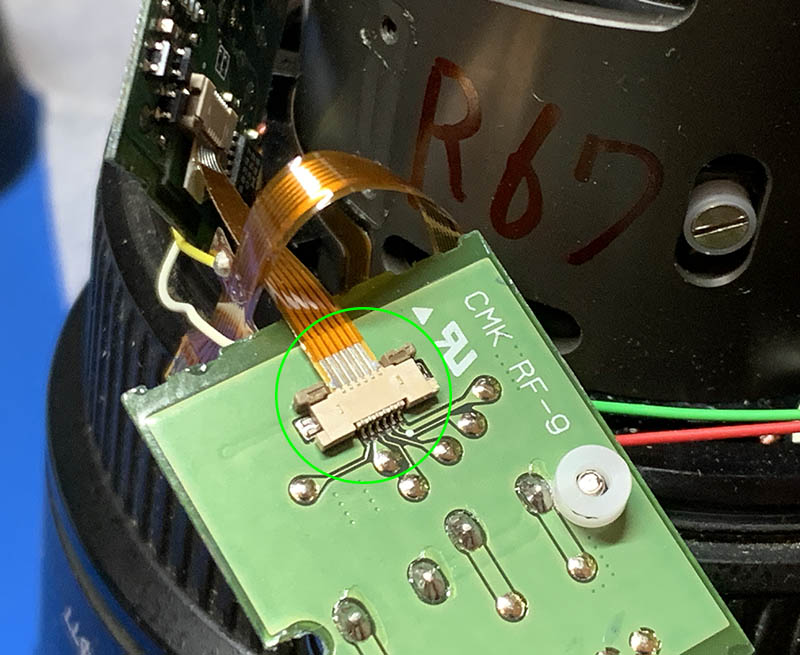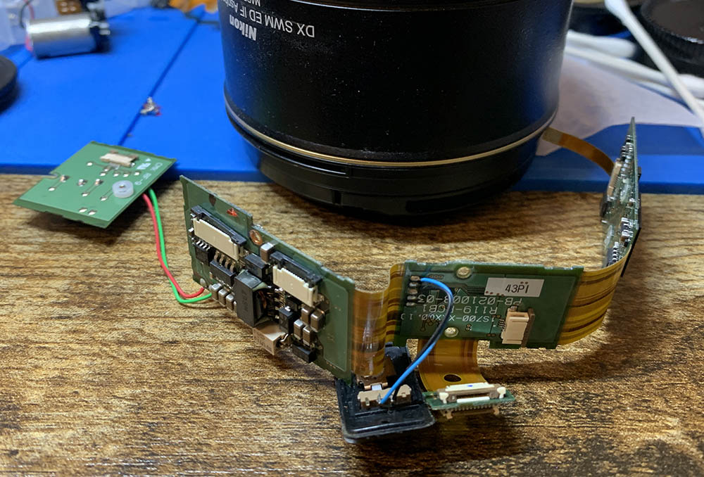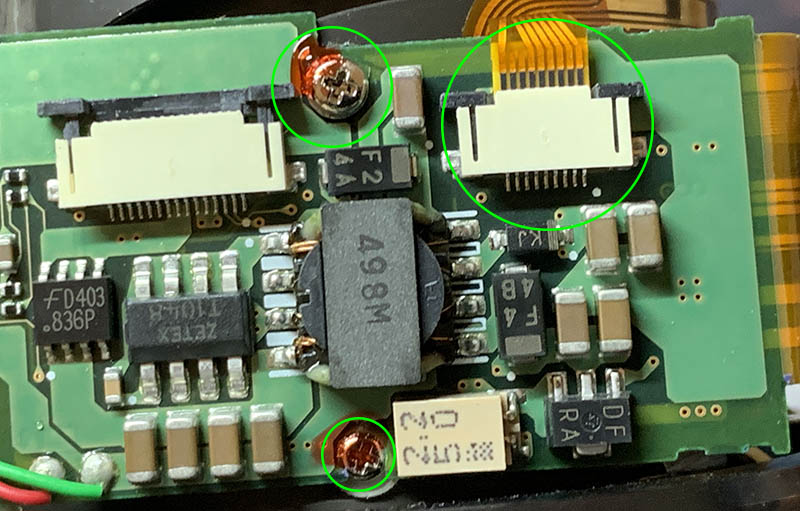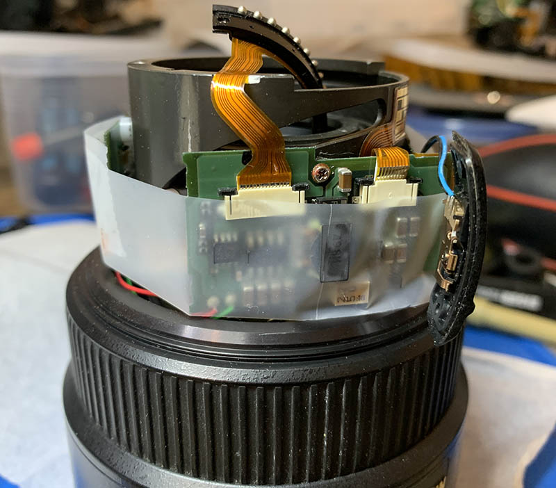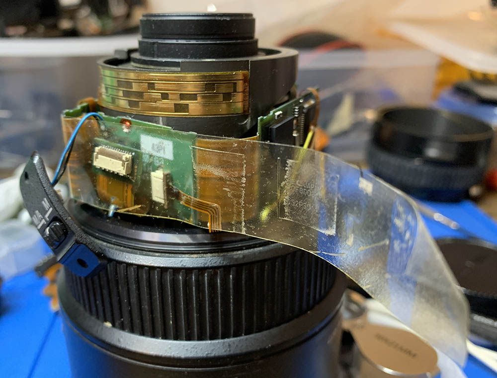 This is the “brain” of the lens, it can be daunting to work on it because of the delicate electronics, using a pair of rubber gloves for insulation or grounding your fingers first are both important. If you do not have prior experience with electronics, do not attempt anything here.