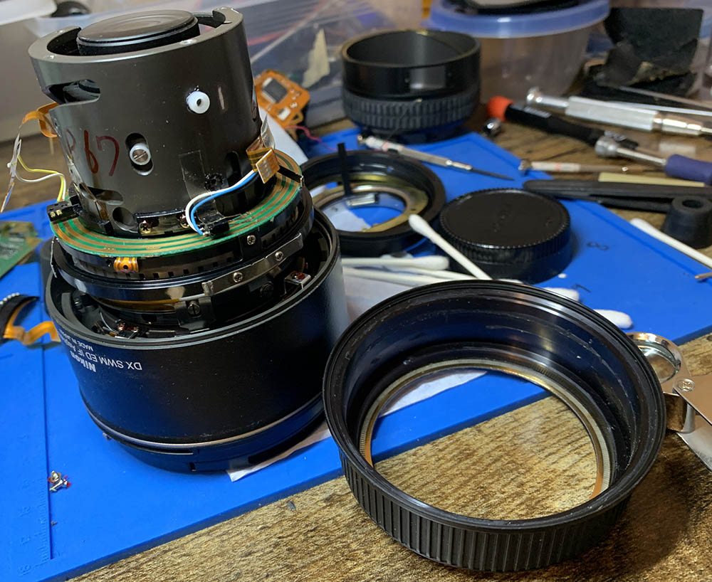 To many people, you don’t need to go any further than this, unless you need to access the deepest part of the lens. Remember to take care not to short or damage the remaining electronics, most specially the delicate SWM assembly.