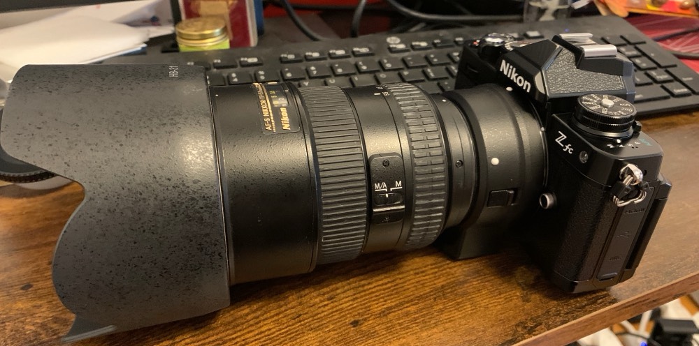 Going back to the topic of adapters, a Nikon FTZ will be better for this lens because it has a foot, that will help support the lens when you put it down on a flat surface, it’s safer this way since you are not putting stress on the camera’s mount. You should also use a sling instead of the traditional straps as well in order to support your setup better. Either way you choose just make sure that you hold your setup by the lens. It is too heavy to be left dangling.