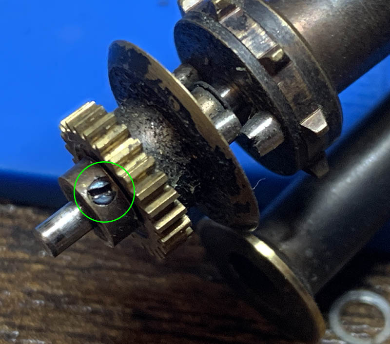 Carefully extract this set screw so you can dismantle everything. Clean everything here very well, they are all greasy and that will impact how this part turns. It’s common to find caked lubricants here.