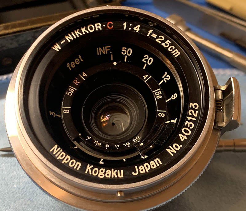The W-Nikkor•C 2.5cm f/4 is the smallest rangefinder Nikkor that you will ever find, that is if you measure it from the lens mount of the camera. As a W-Nikkor, it fills a unique place in the catalog for a super-wide lens. During that time, a 35mm lens is already considered wide and 28mm is the entry point to the really-wide category. It was made from 1953 up to an undetermined date so we assume that production lasted until the final days of the Nikon rangefinder era. There are only 2 variations for the Nikon S-mount, earlier ones come in shiny chrome like you see here while later ones are painted black. These were also made in Leica M39 screw mounts, too. Just like everything Leica, they will cost you more than a kidney to acquire.