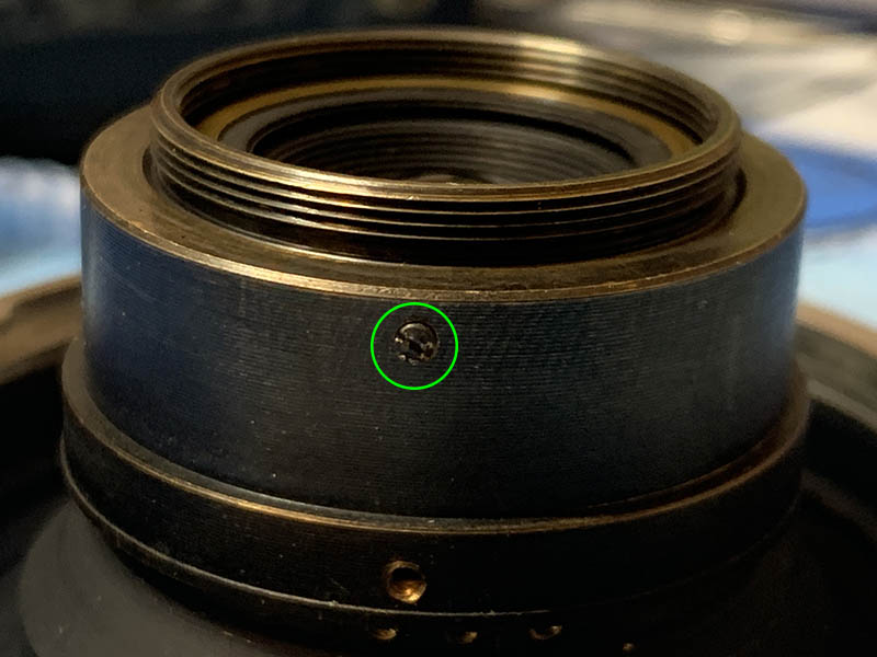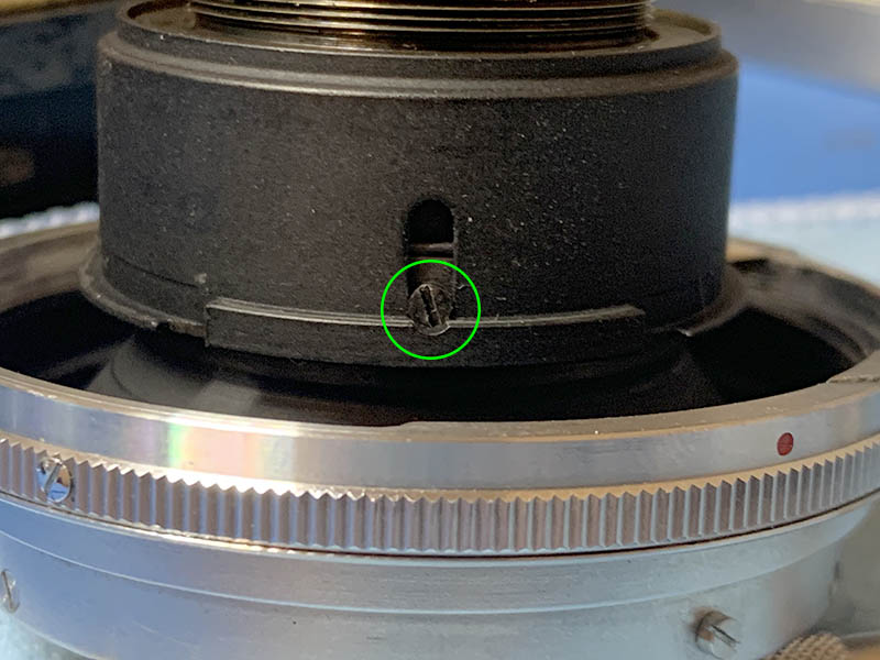Also locate another screw that couples the aperture selector ring to the iris mechanism inside, you should not forget to remove it before you continue to the next steps.
