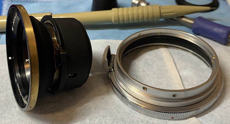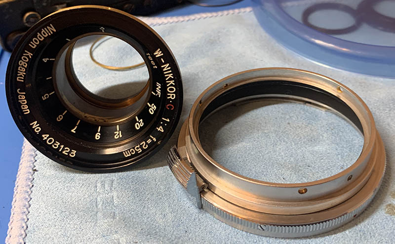 Just like every W-Nikkor, we want to be able to remove the objective as soon as possible so we will focus on that in this section. Again, please read my instructions very carefully because my steps aren’t showing the exact correct sequence of disassembly.