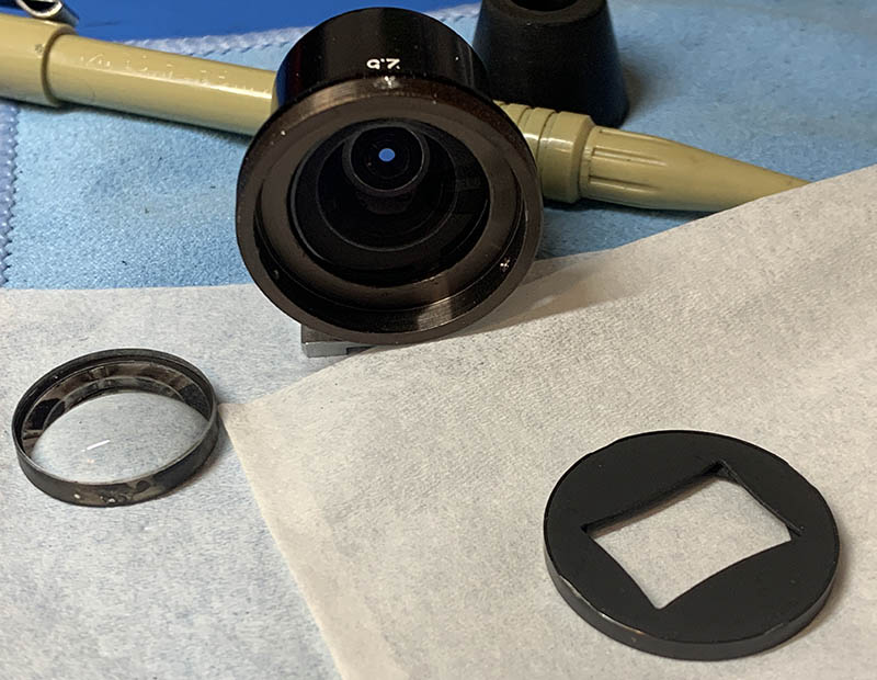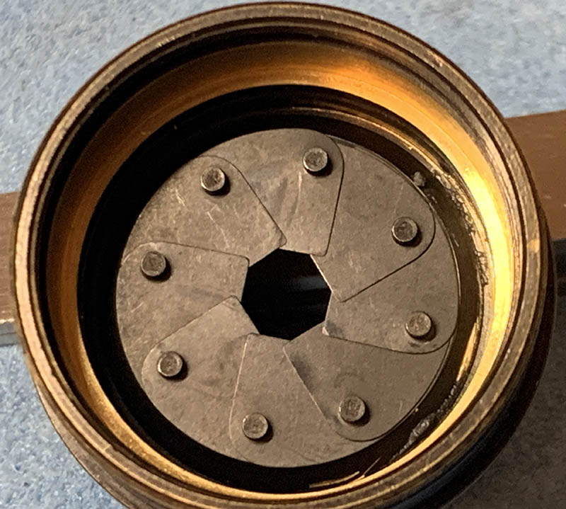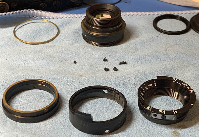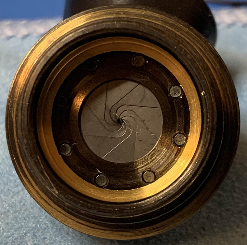 The iris mechanism has now been fully rebuilt. I just need to blow away the fibers and wipe them clean. It is now operating smoothly like it’s new.