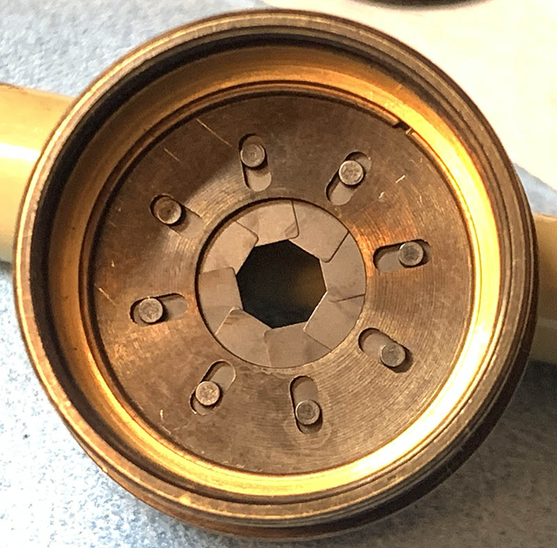 The aperture mechanism is now exposed, study how it operates before you proceed. Note that it’s never going to open completely. Look to the side and turn the diaphragm plate from the side, there is a slit at the wall that allows you to couple the plate to the aperture selector ring.