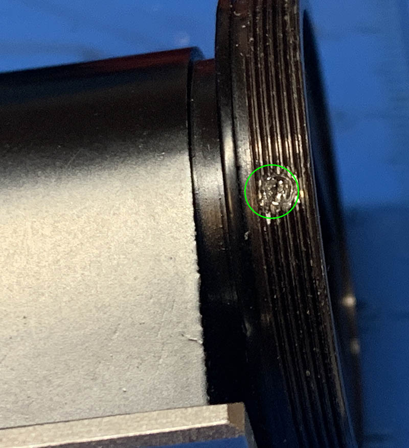 That will enable you to remove the objective from the rest of the barrel. Note that there’s a shim here, it’s used for adjusting the focus so never misplace or damage it.