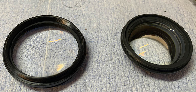 Apart from the obvious yellowing of the radioactive glass, I can’t find any noticeable differences when the lenses are viewed from the top or bottom; maybe the newer one is a little bit wider but I can’t be sure.