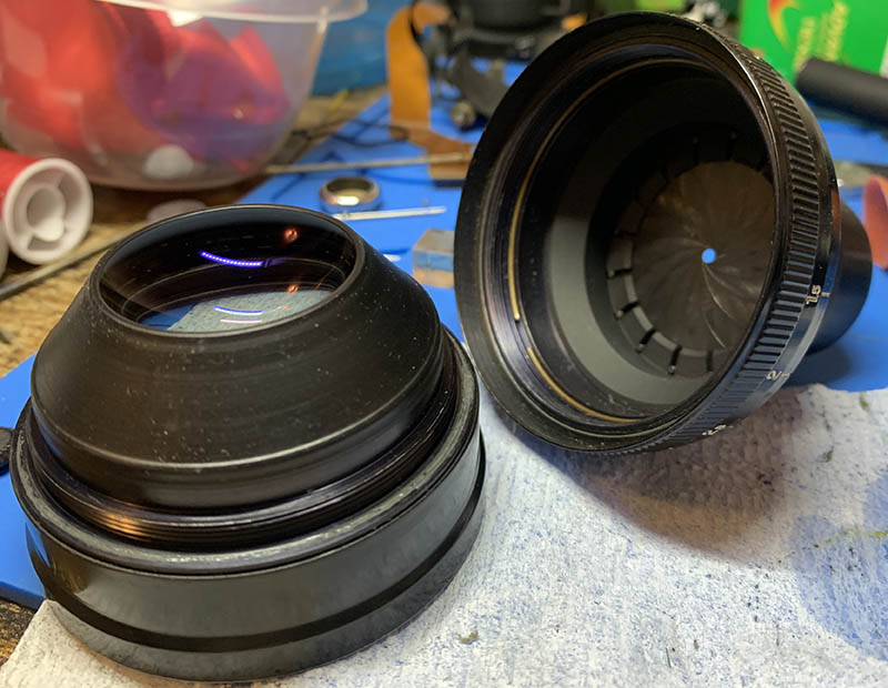The iris is now in front of you! Resist the urge to remove everything as quick as possible. I gently tapped the housing from the back and the iris blades came off, caught by a soft towel for safety.