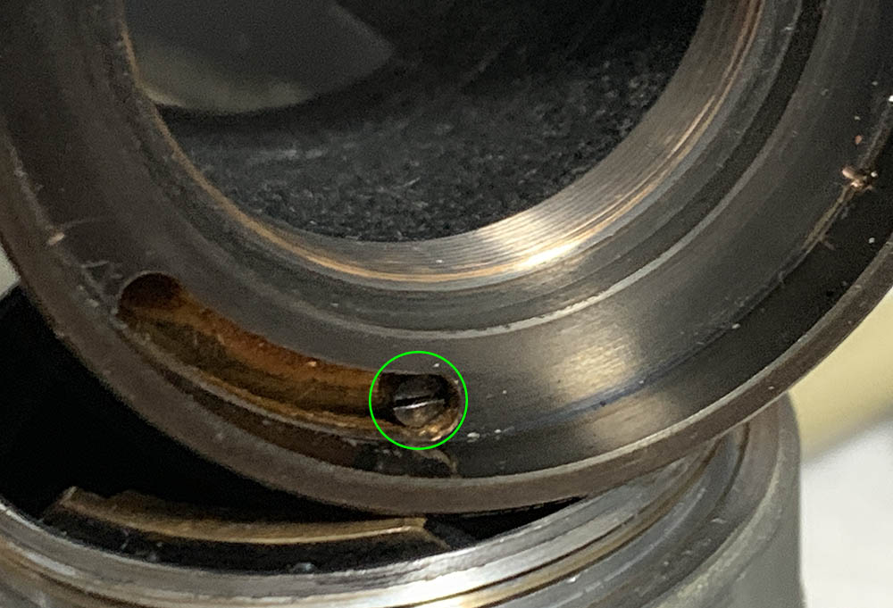 Carefully extract this screw so you can decouple the aperture ring’s collar from the iris mechanism.